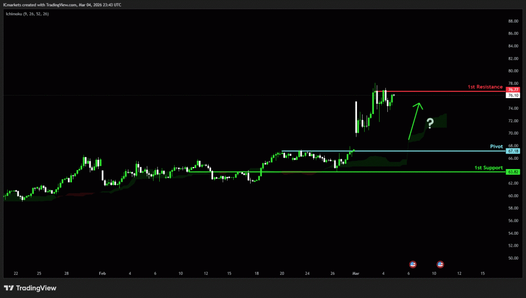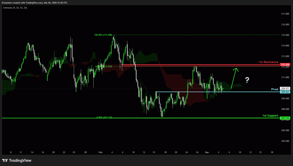 The price could see a short-term pullback toward the pivot before rising again toward the 1st resistance.