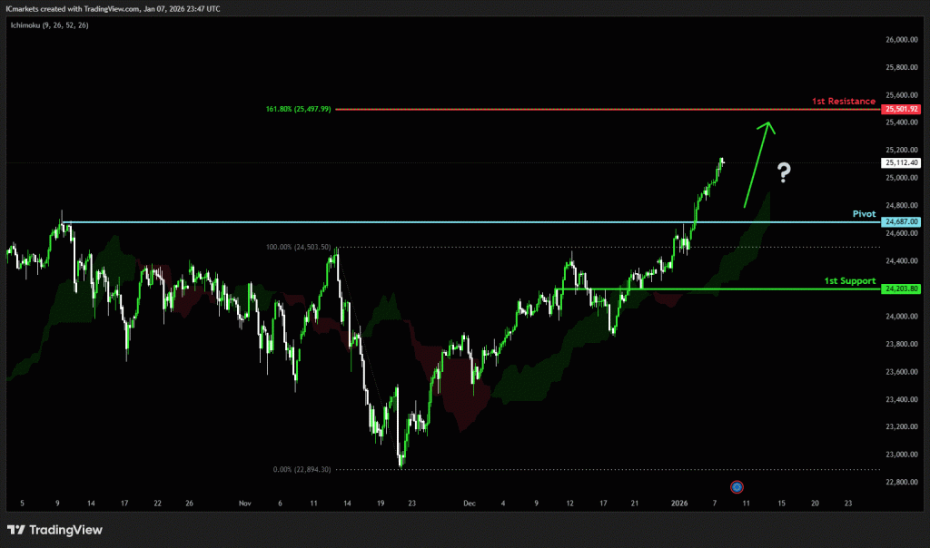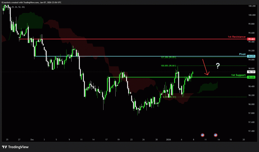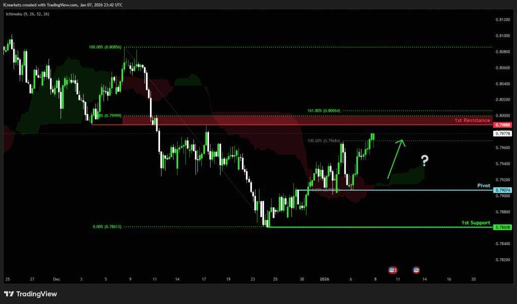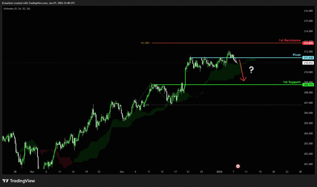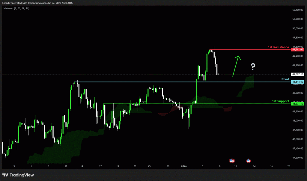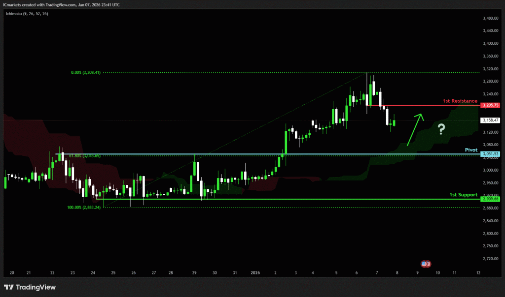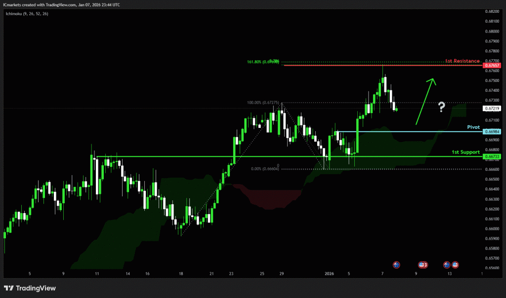 The price could see a short-term pullback toward the pivot before rising again toward the 1st resistance.