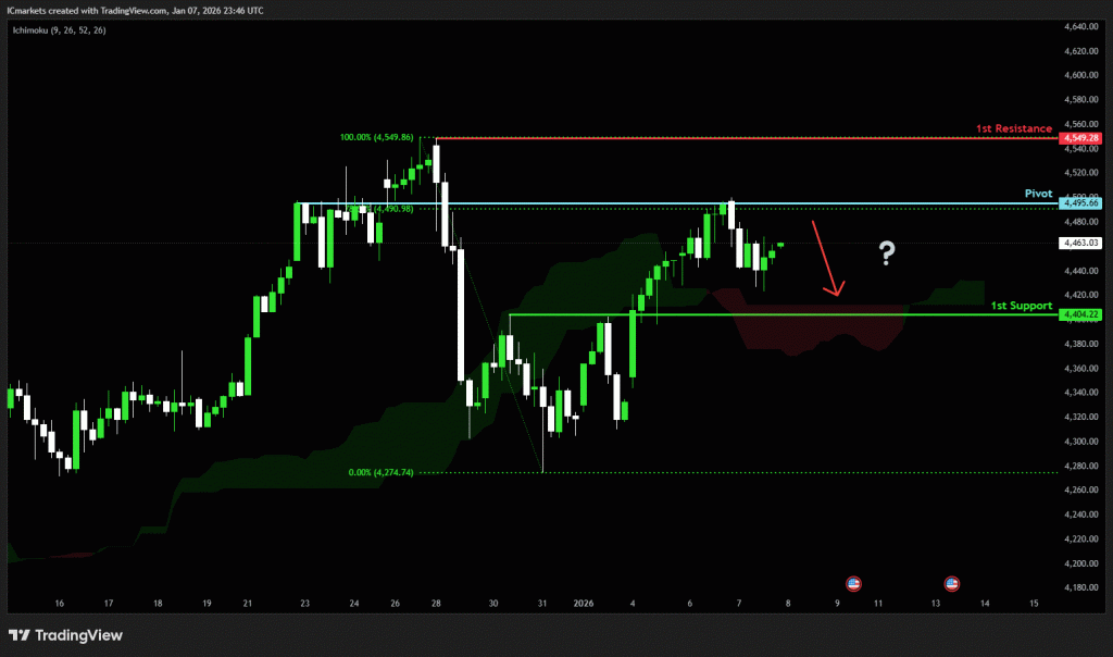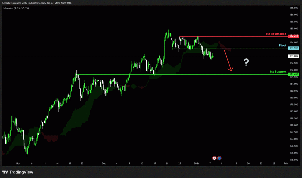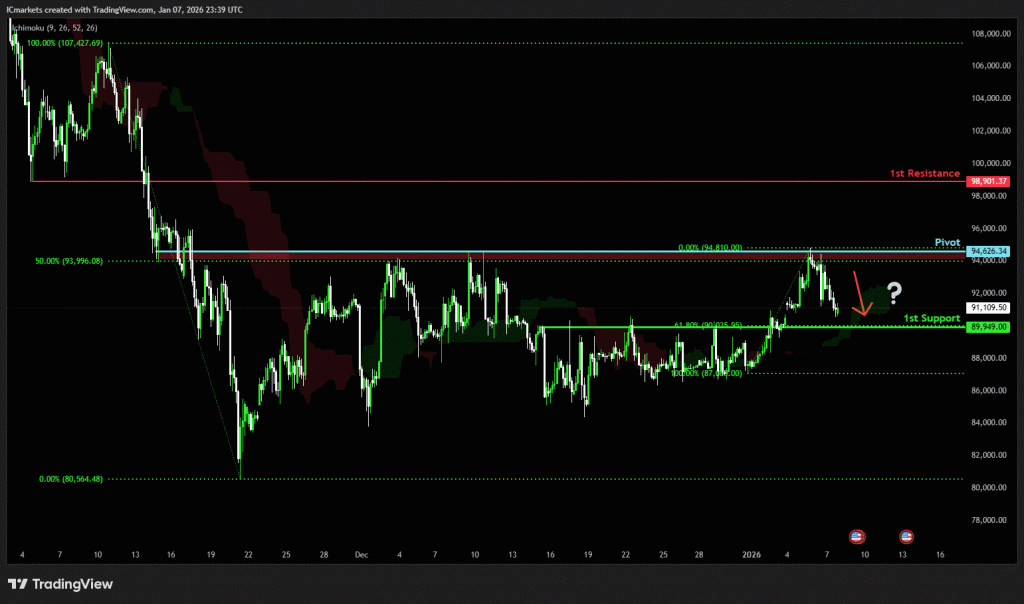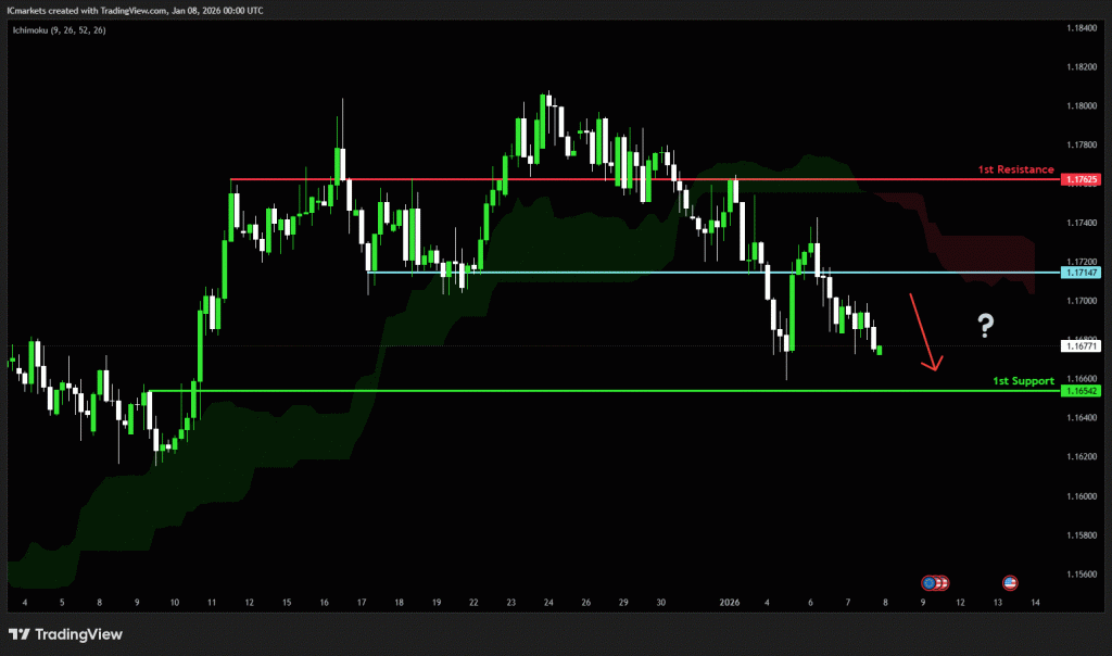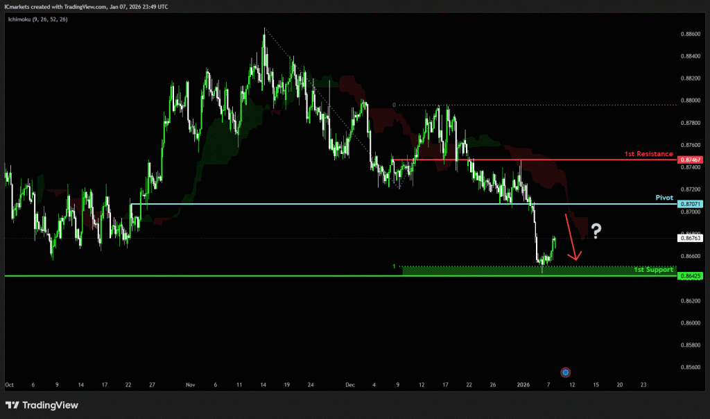 The price could see a short-term pullback toward the pivot before continuing its bearish move down toward the 1st support.