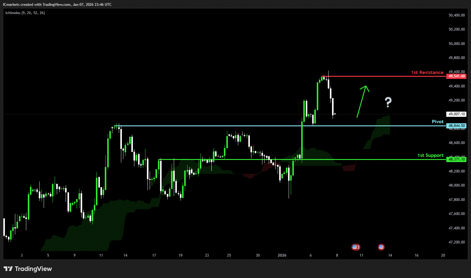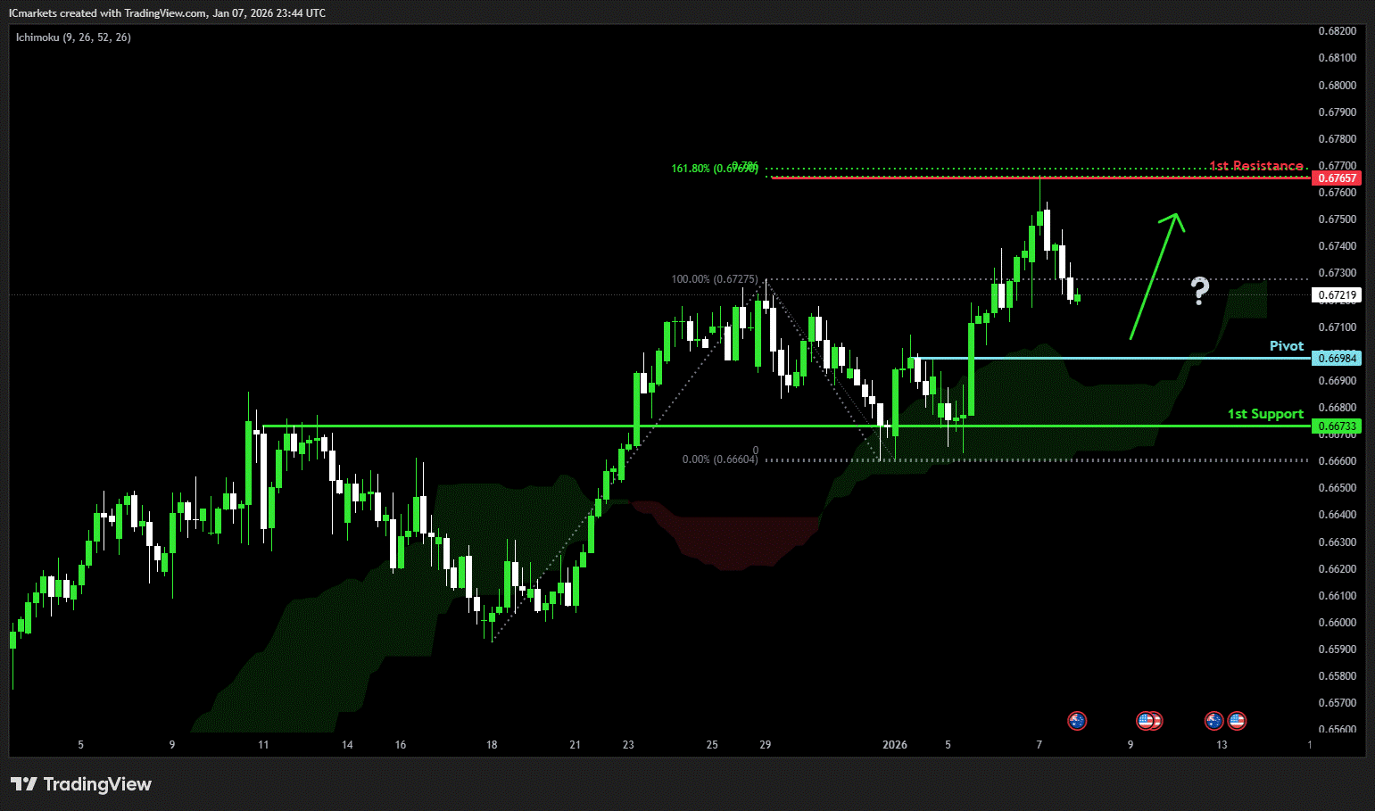 The price could see a short-term pullback toward the pivot before rising again toward the 1st resistance.