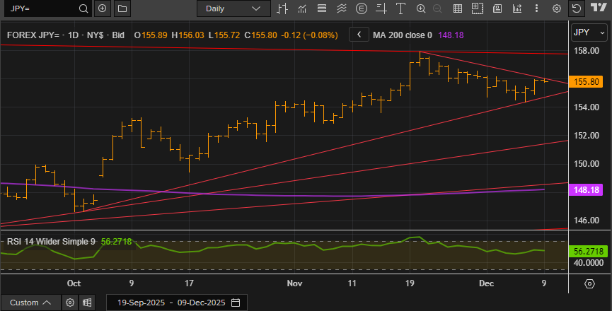 A more dovish Fed paired with a hawkish Bank of Japan backdrop would favour interest-rate-differential shorts — opening the door to a deeper downside correction. Conversely, a less dovish Fed could be the trigger for another drive higher, putting recent highs up near 158.00 back into play and making Yen levels once again uncomfortably for the Japanese monetary authorities.