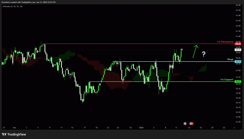 The price could see a short-term pullback toward the pivot before rising again toward the 1st resistance.