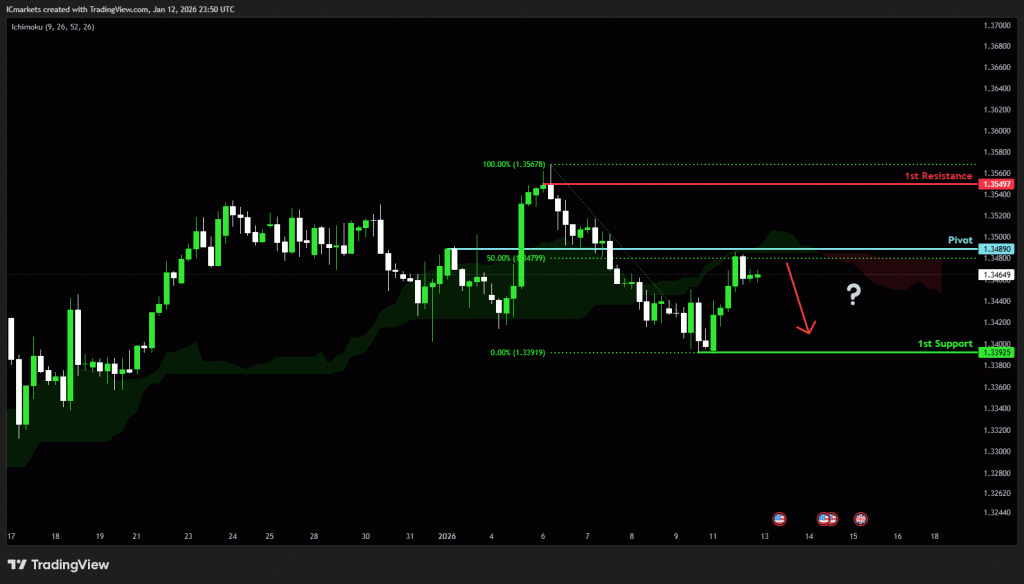 The price could see a short-term pullback toward the pivot before continuing its bearish move down toward the 1st support.
