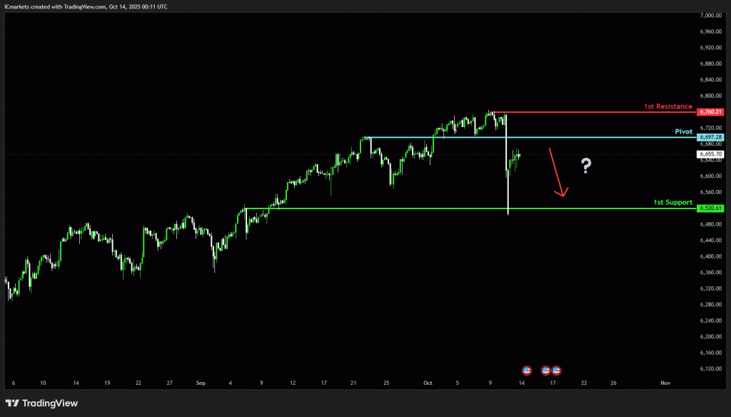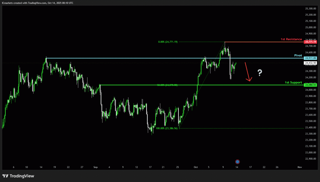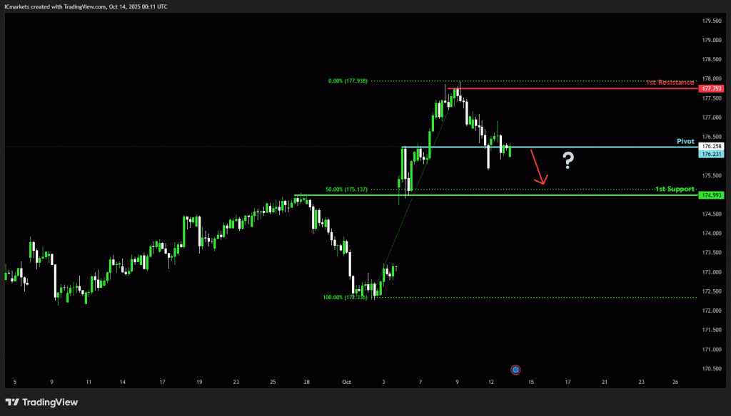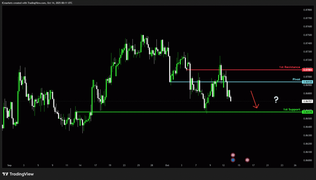 The price could see a short-term pullback toward the pivot before continuing its bearish move down toward the 1st support.