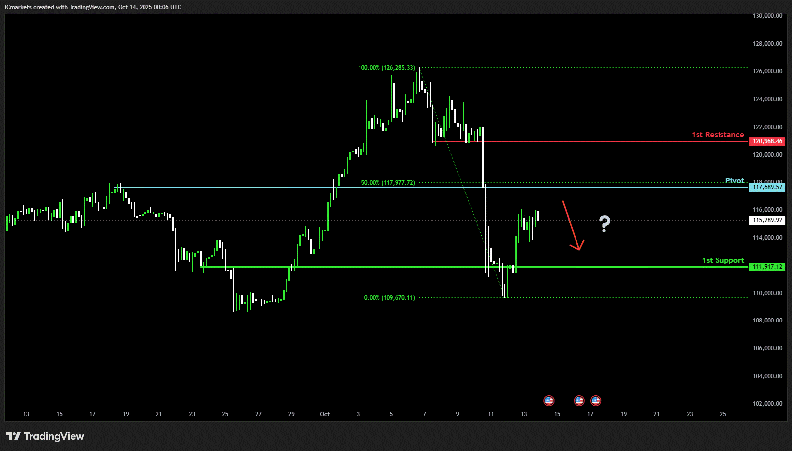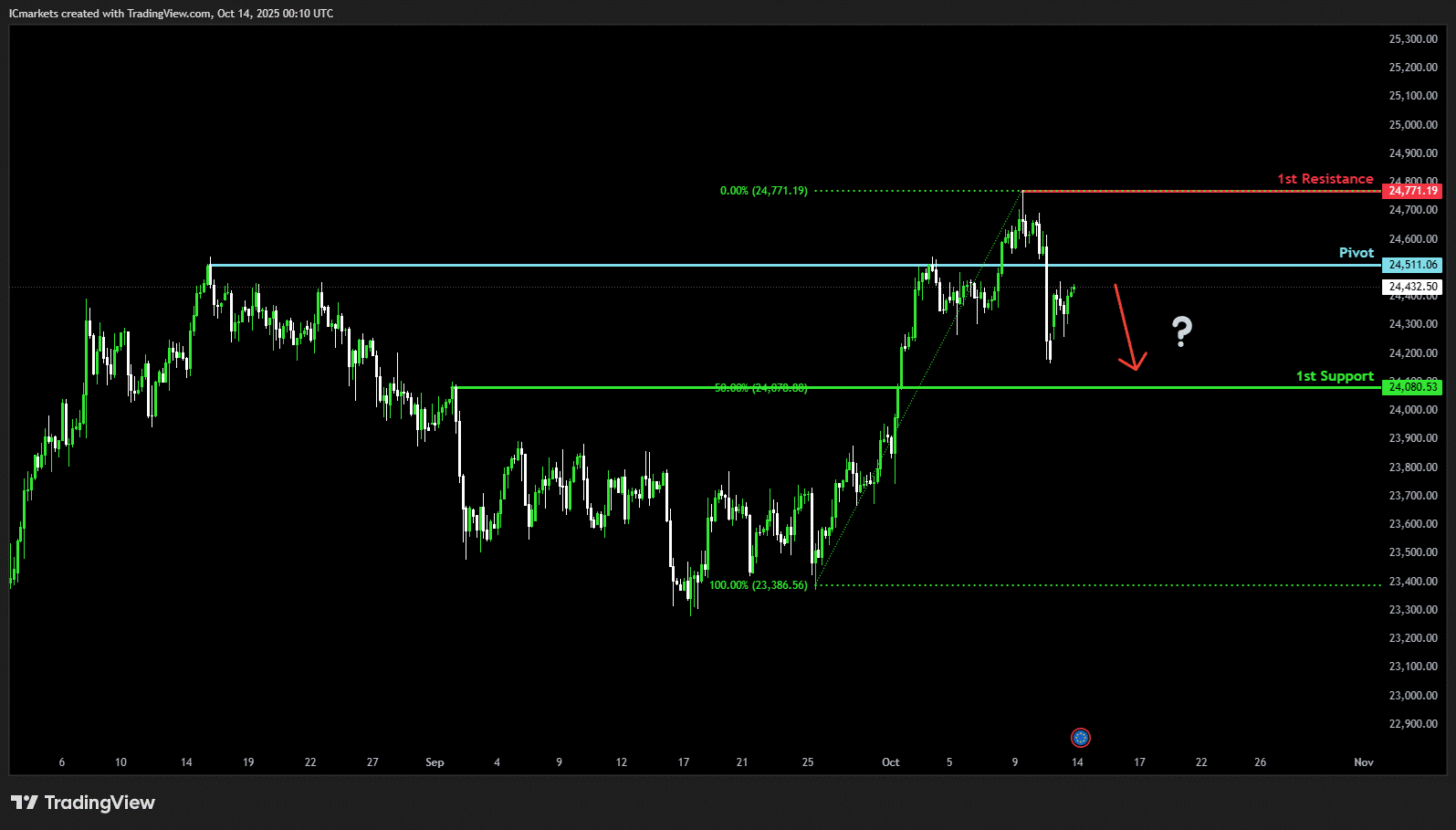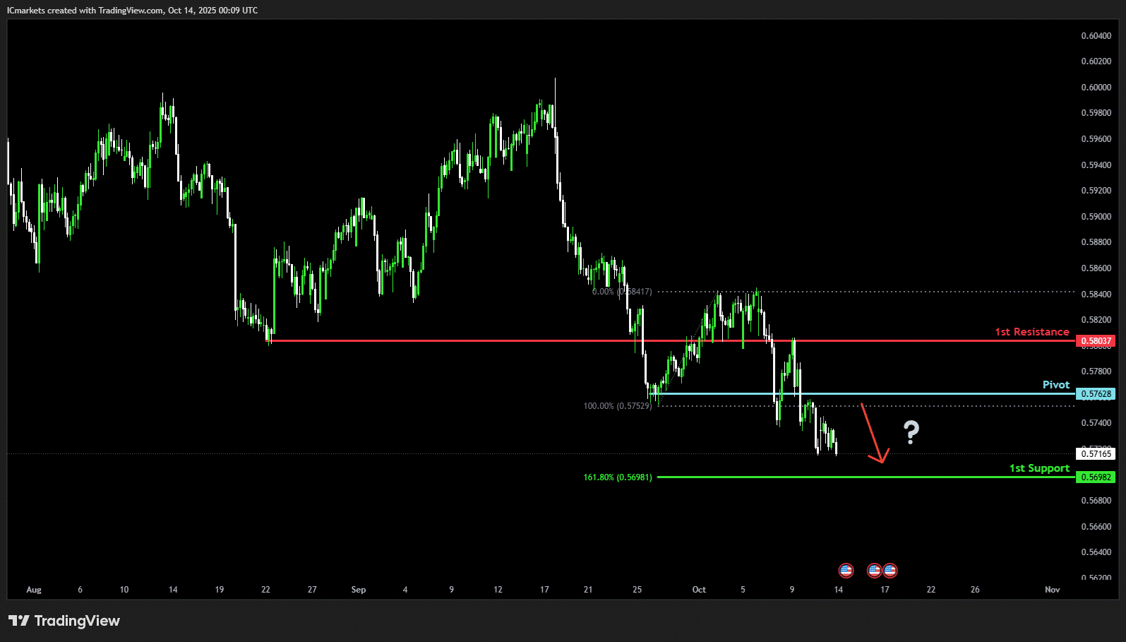 The price could see a short-term pullback toward the pivot before continuing its bearish move down toward the 1st support.