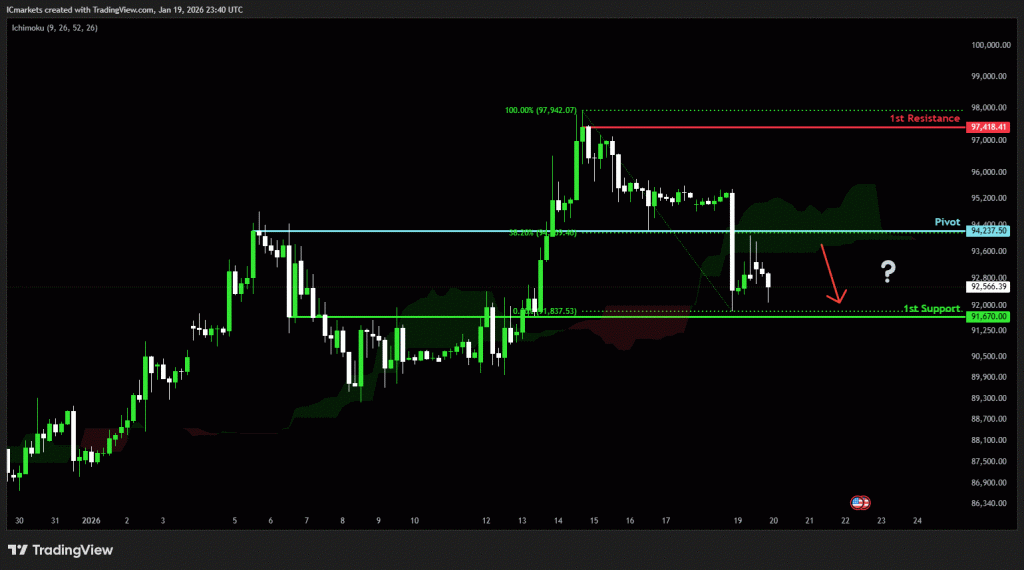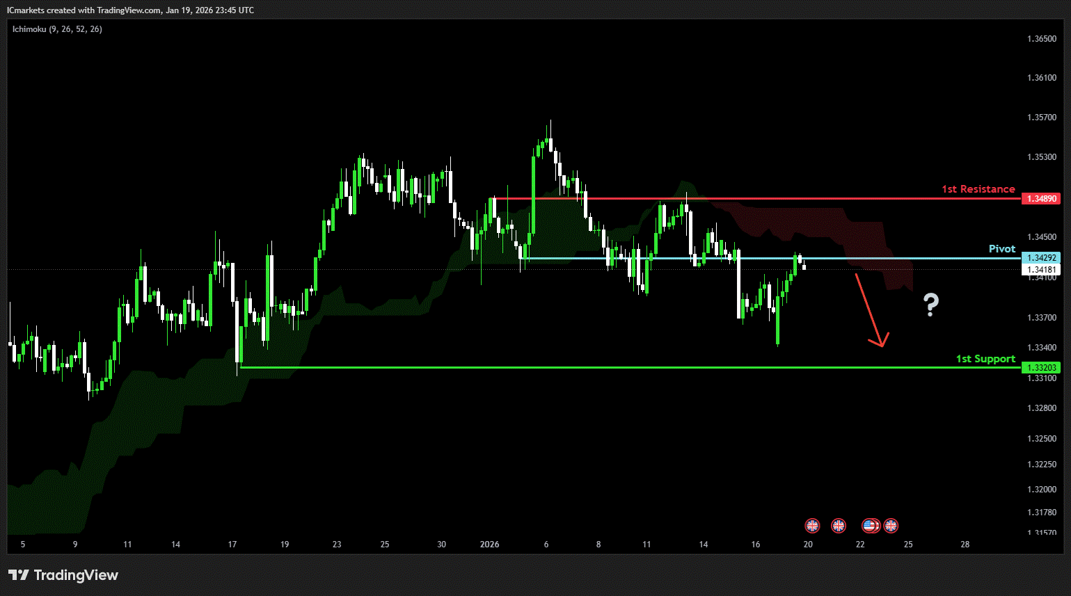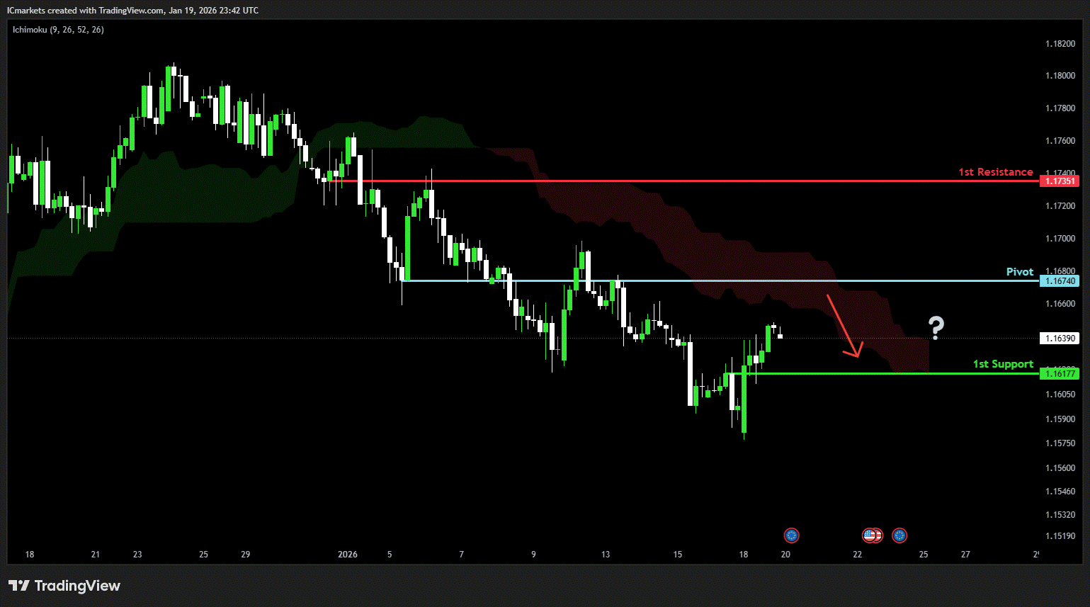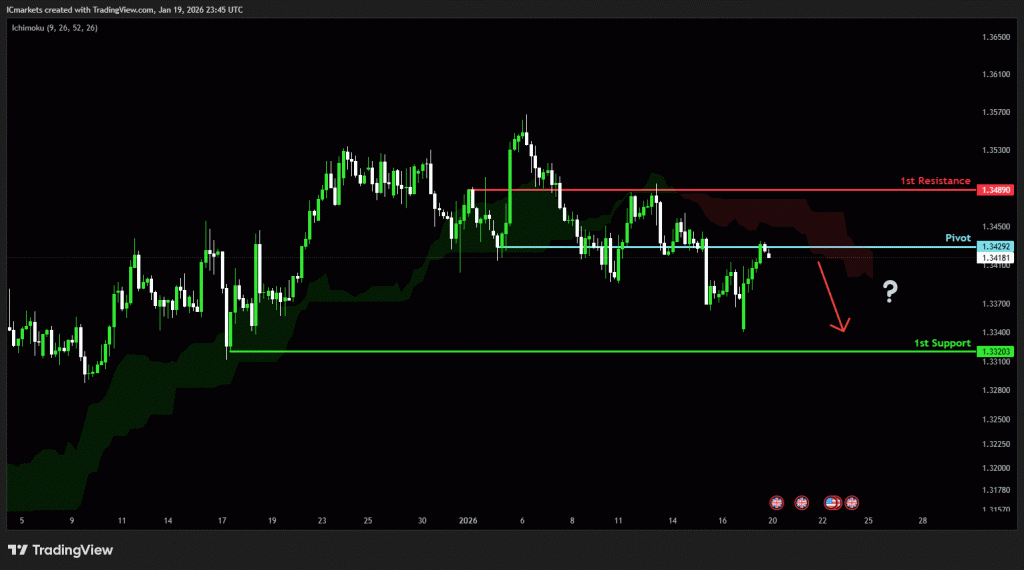 The price could see a short-term pullback toward the pivot before continuing its bearish move down toward the 1st support.