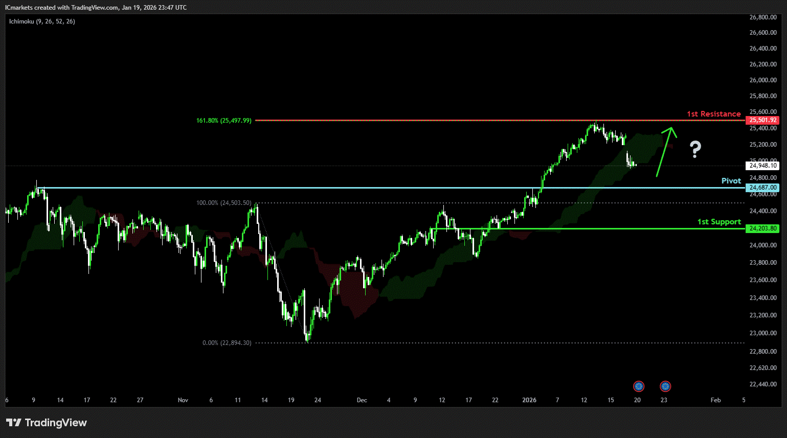 1st resistance: 25,501.92