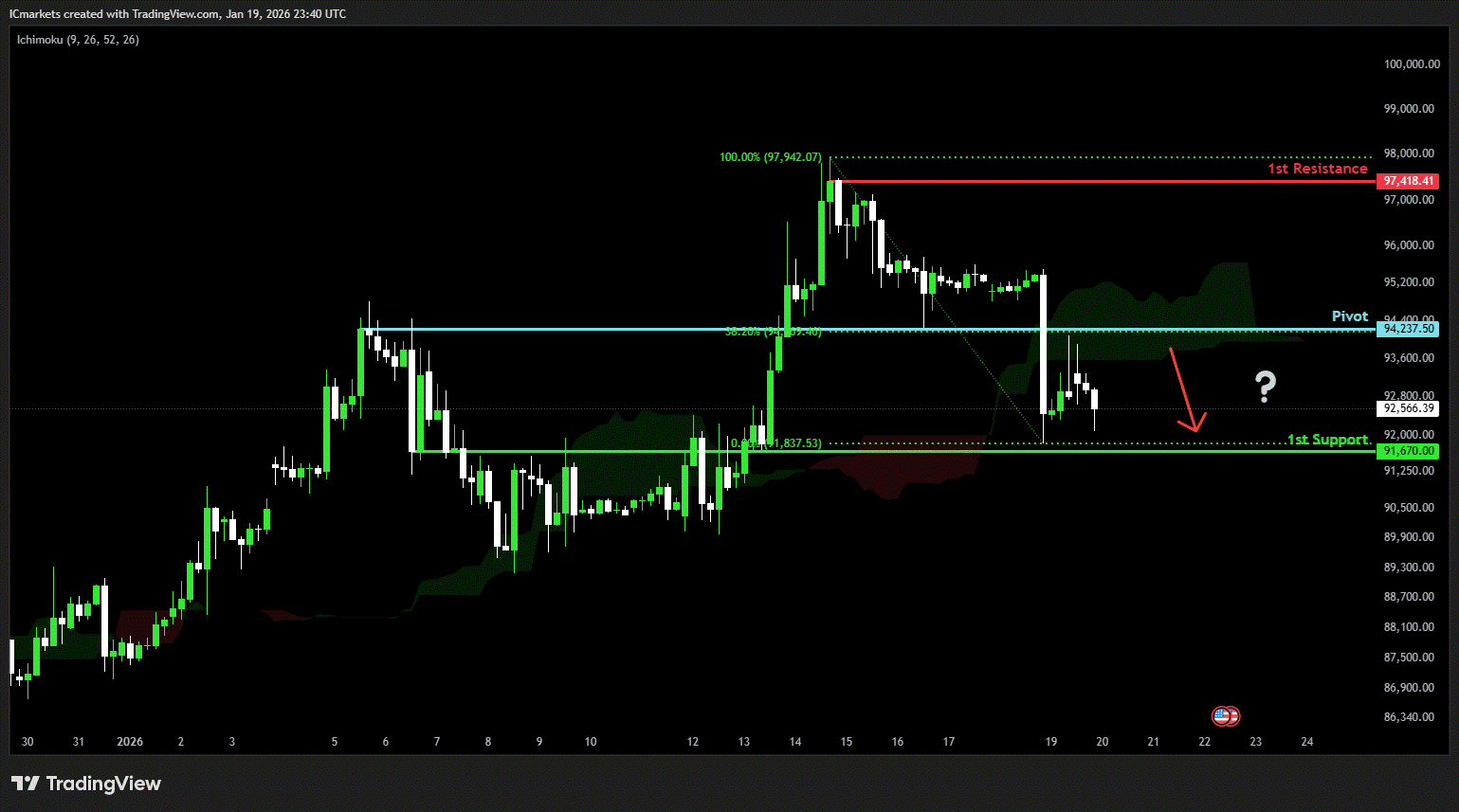 Supporting reasons: Identified as a pullback support that aligns with the 61.8% Fibonacci retracement, where renewed buying pressure could emerge to push the price higher.