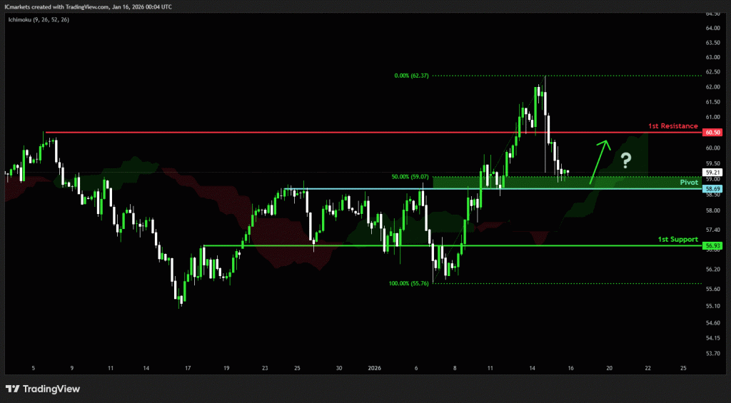 The price could see a short-term pullback toward the pivot before rising again toward the 1st resistance.