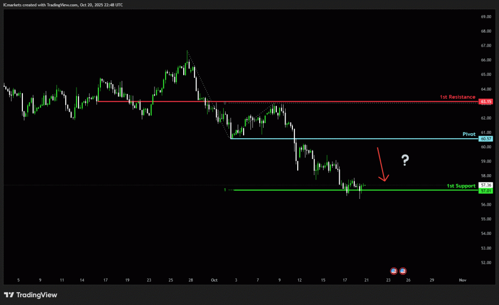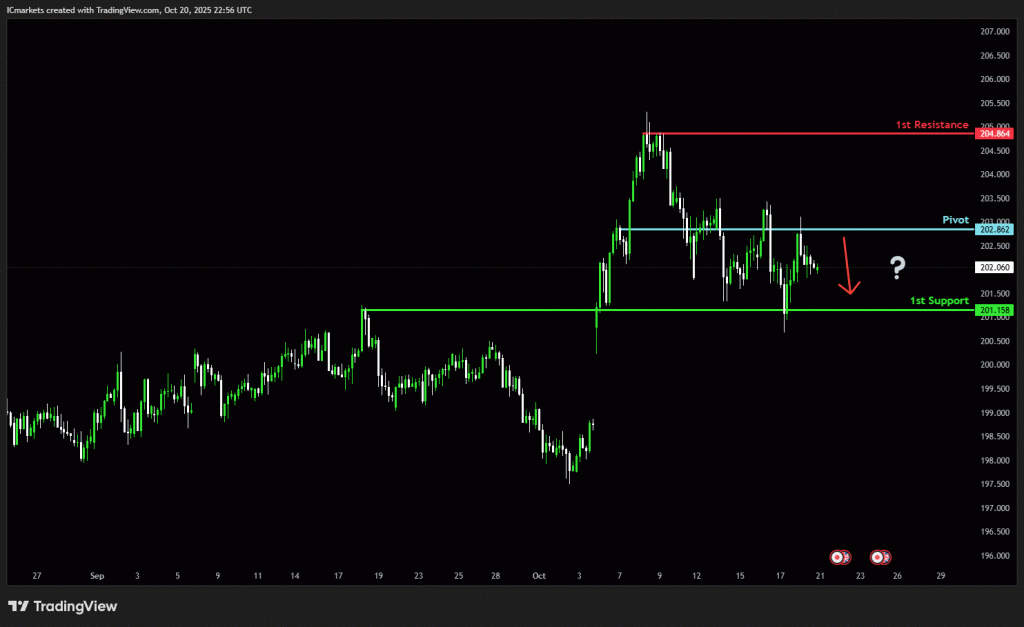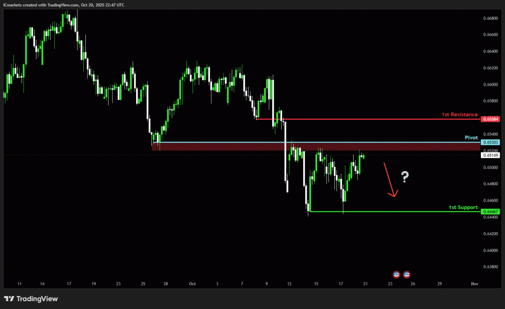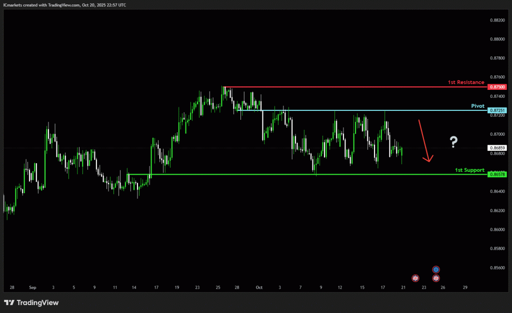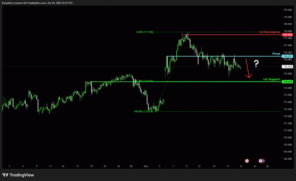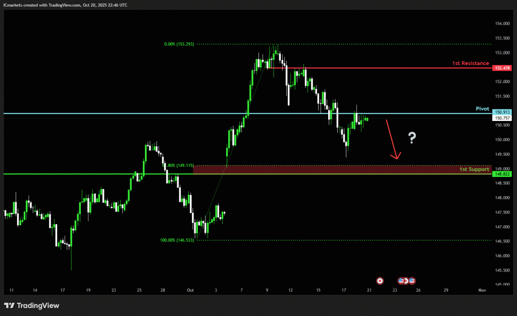 The price could see a short-term pullback toward the pivot before continuing its bearish move down toward the 1st support.