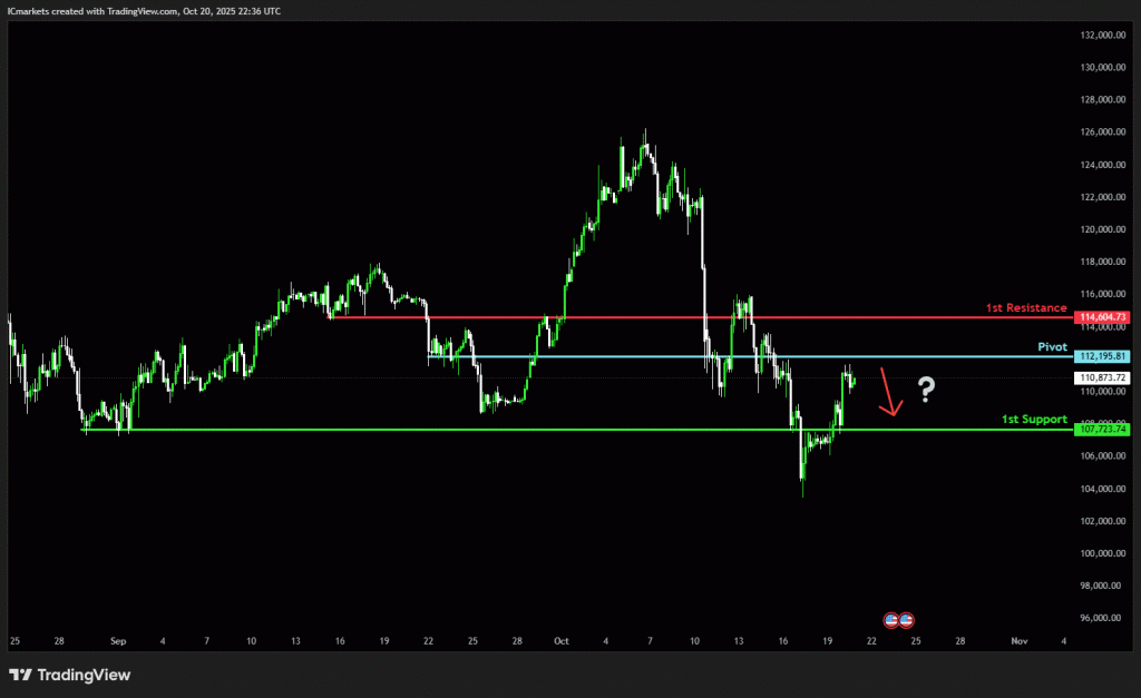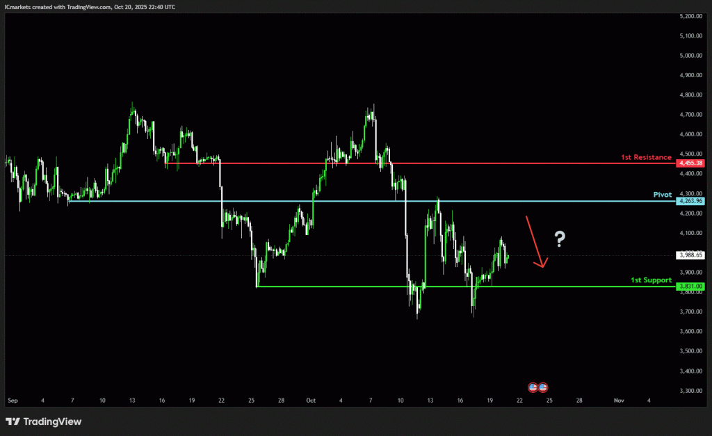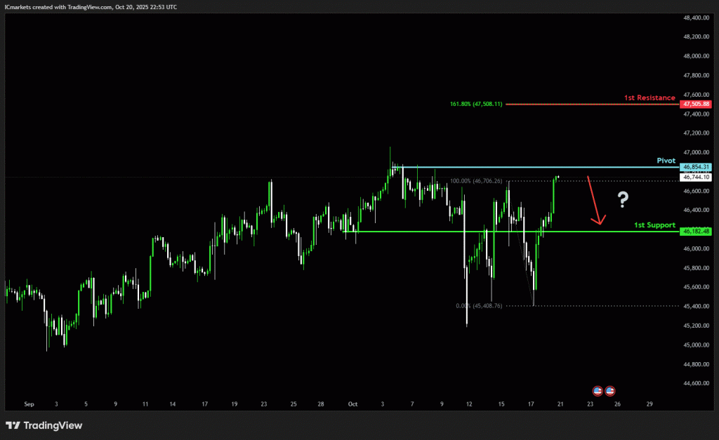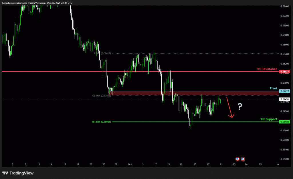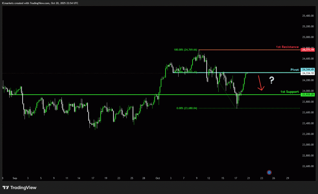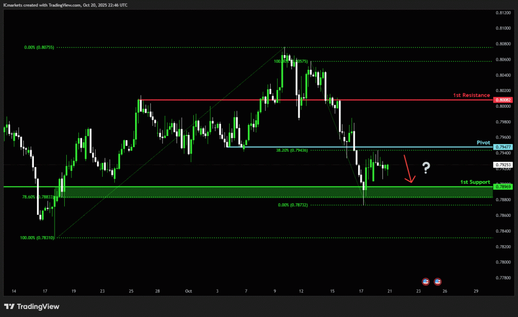 The price could see a short-term pullback toward the pivot before continuing its bearish move down toward the 1st support.