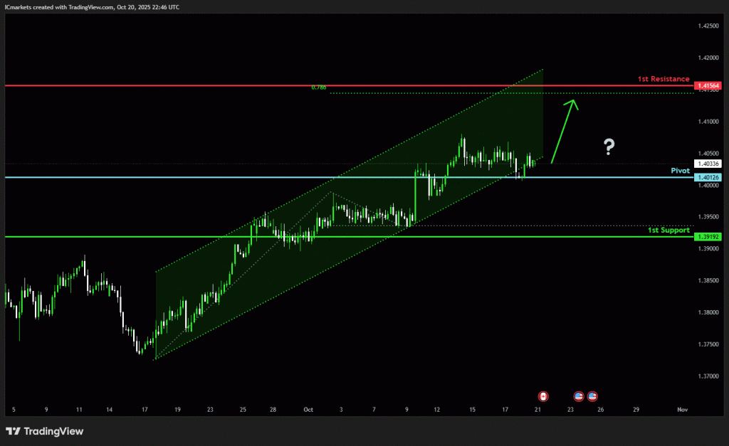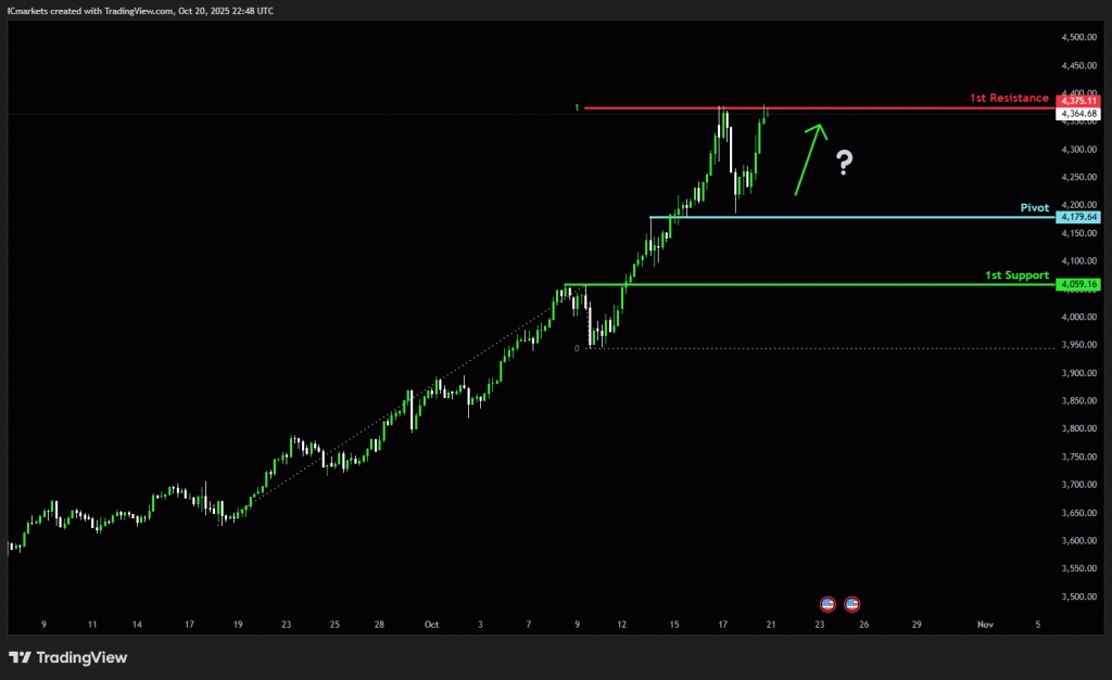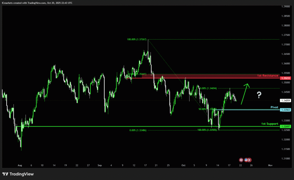 The price has already bounced off the pivot and may continue its bullish move toward the 1st resistance.