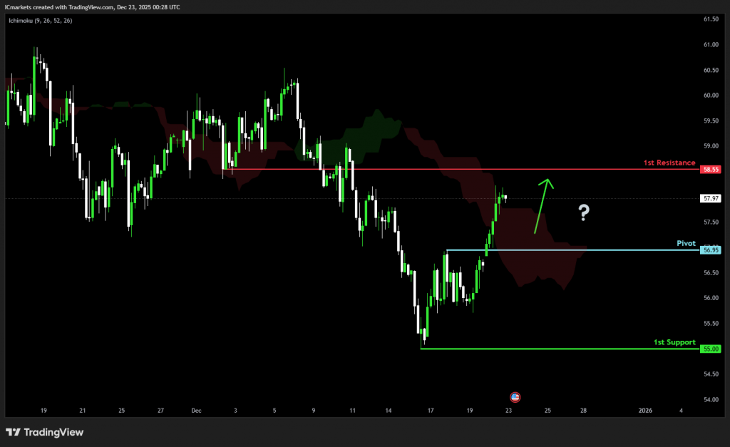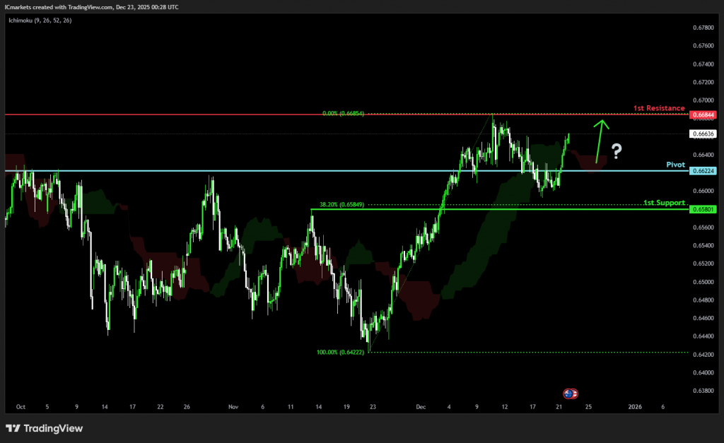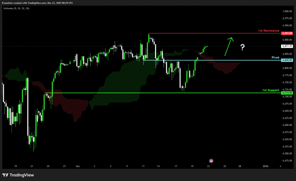 The price could see a short-term pullback toward the pivot before rising again toward the 1st resistance.