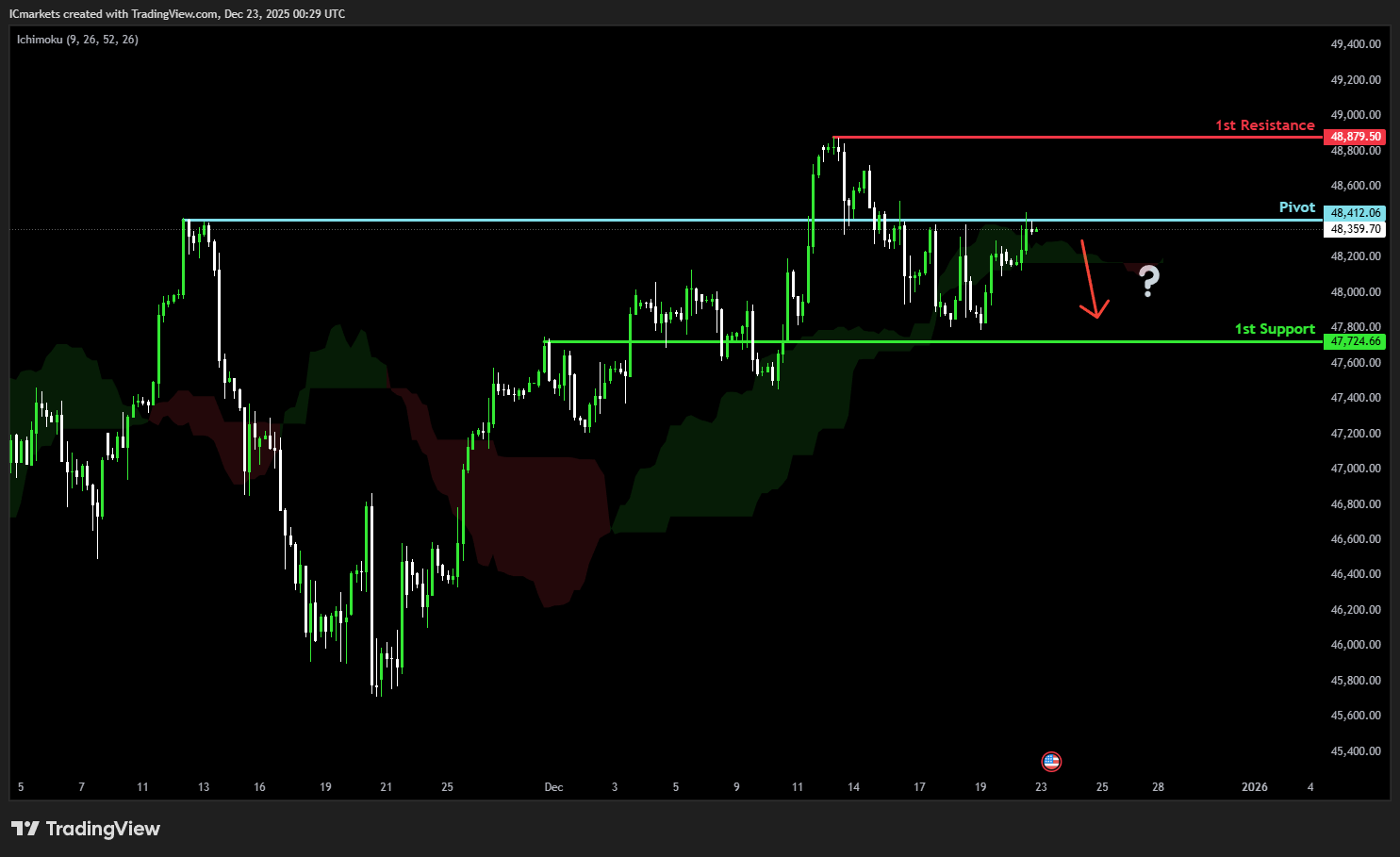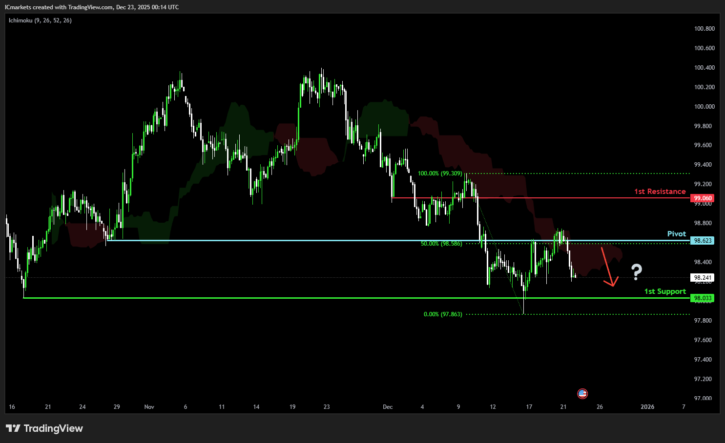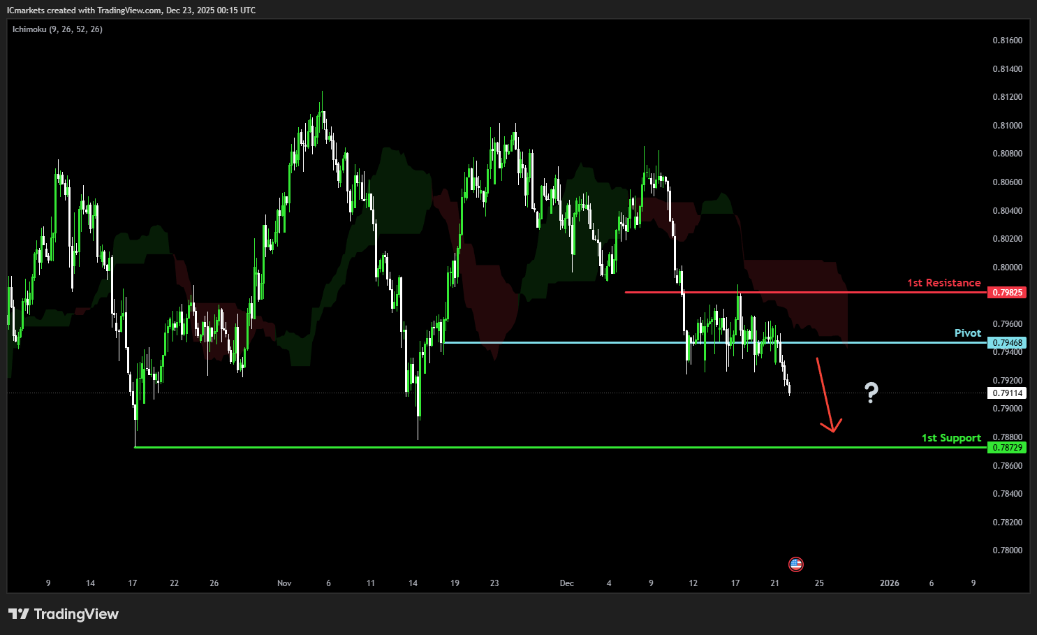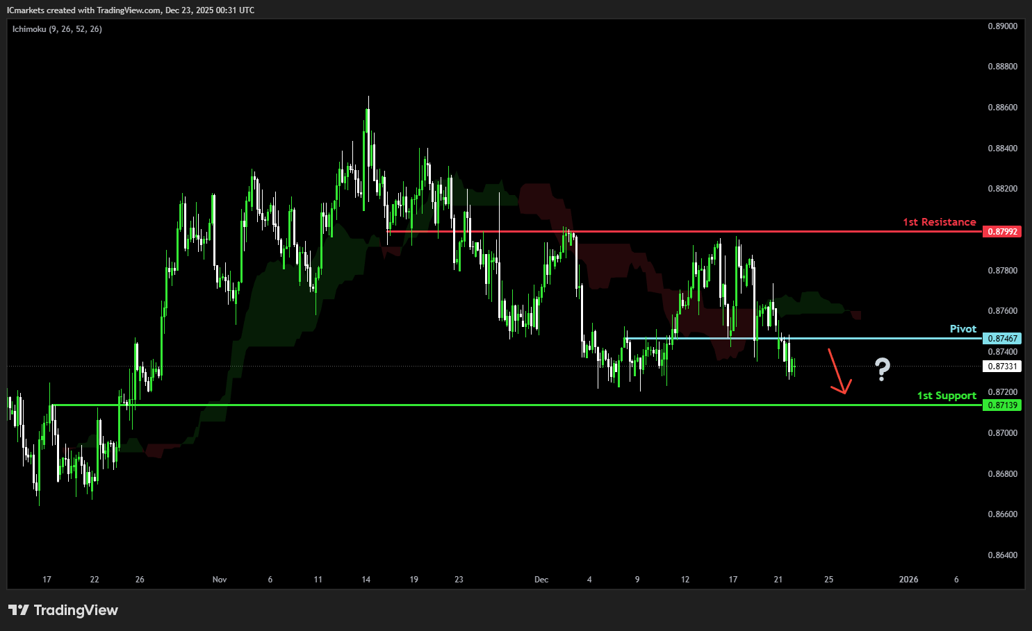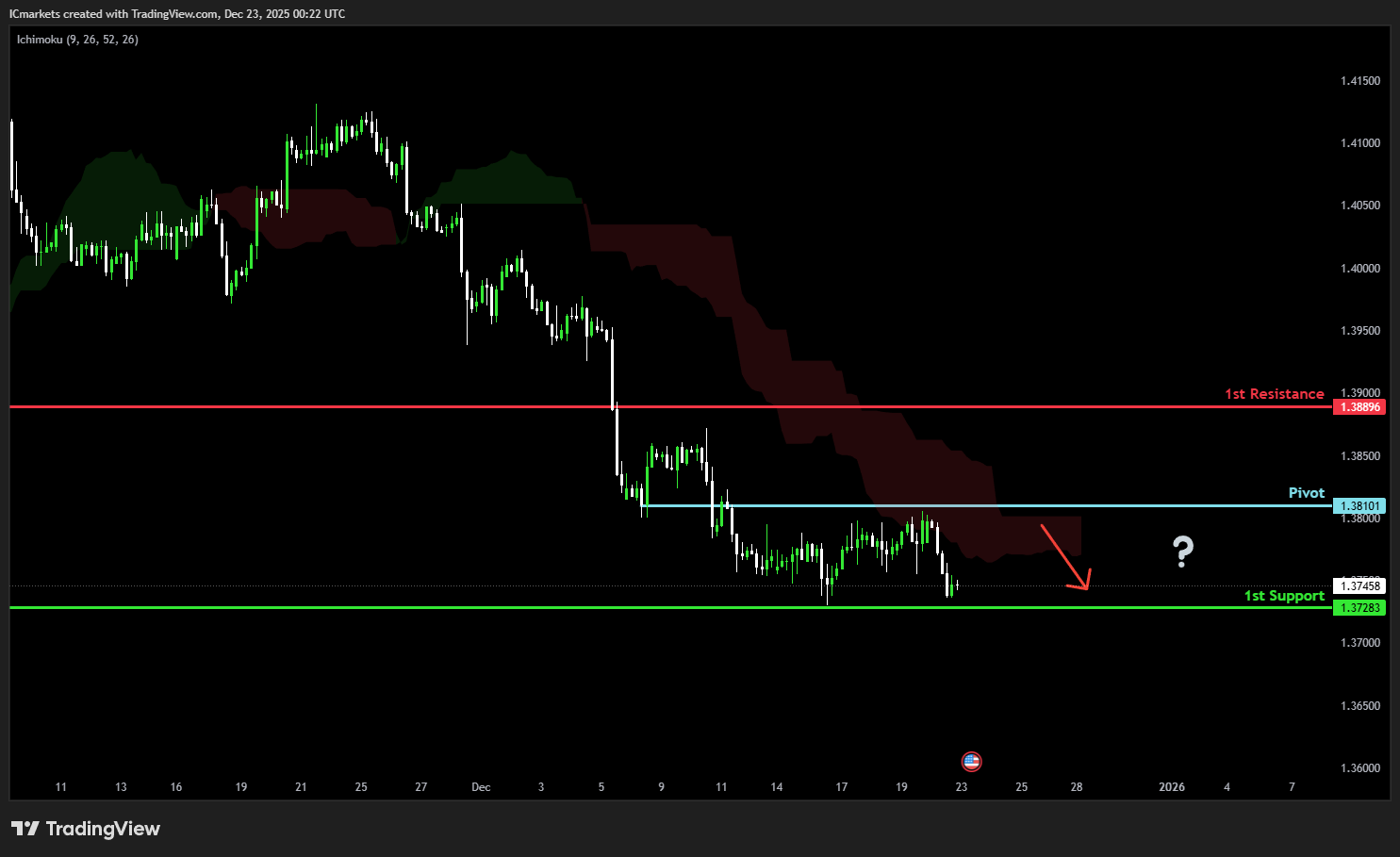 The price could see a short-term pullback toward the pivot before continuing its bearish move down toward the 1st support.