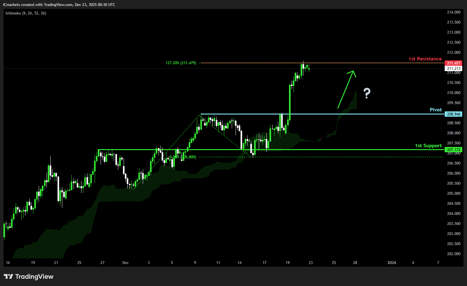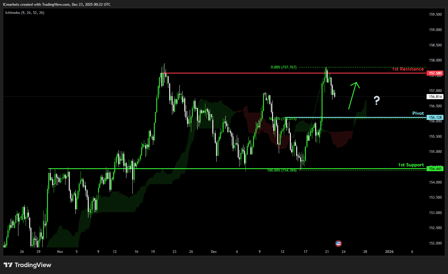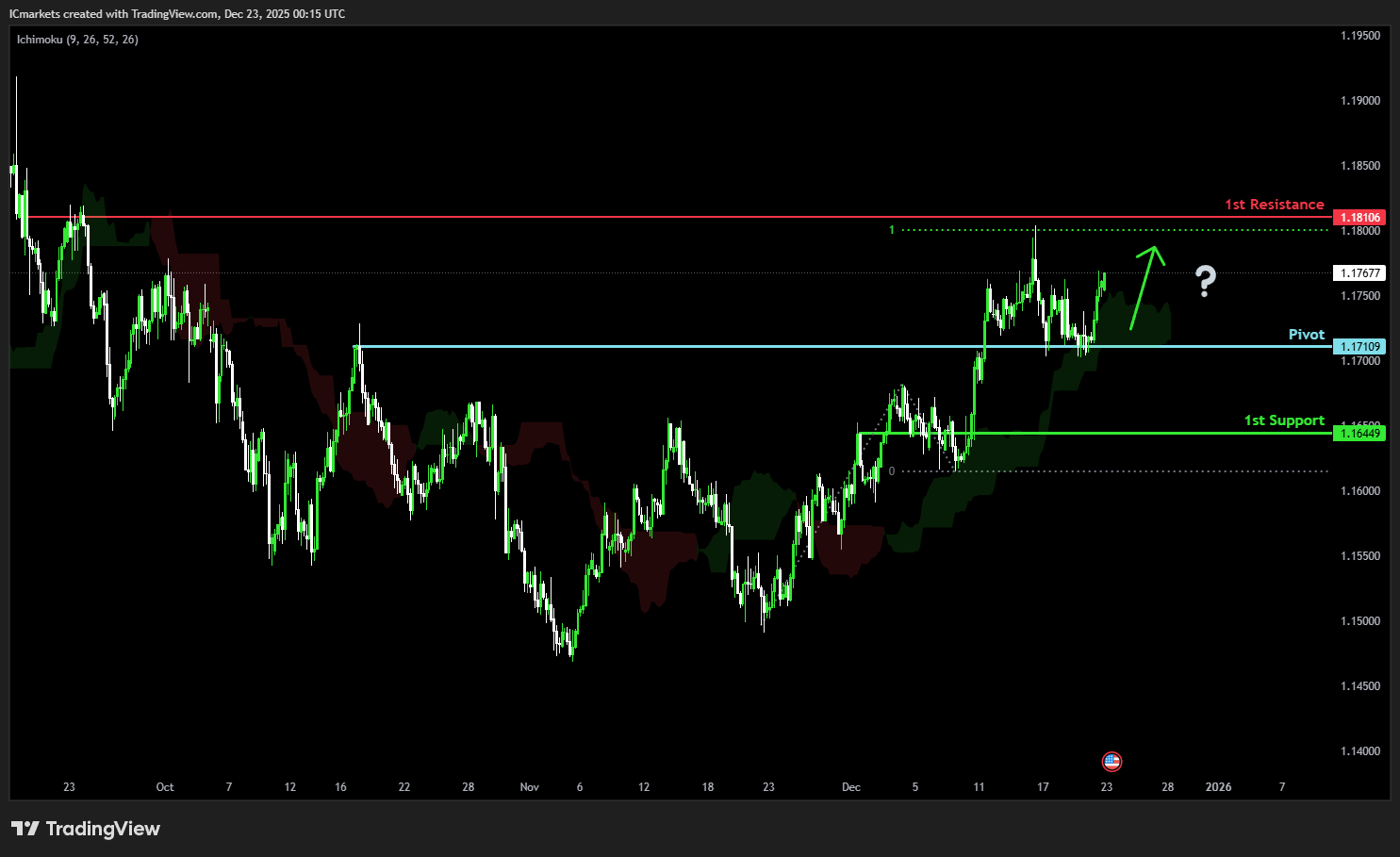 The price could see a short-term pullback toward the pivot before rising again toward the 1st resistance.