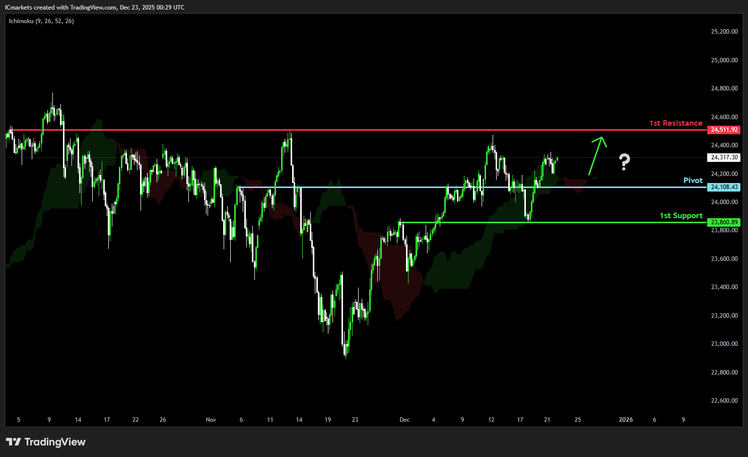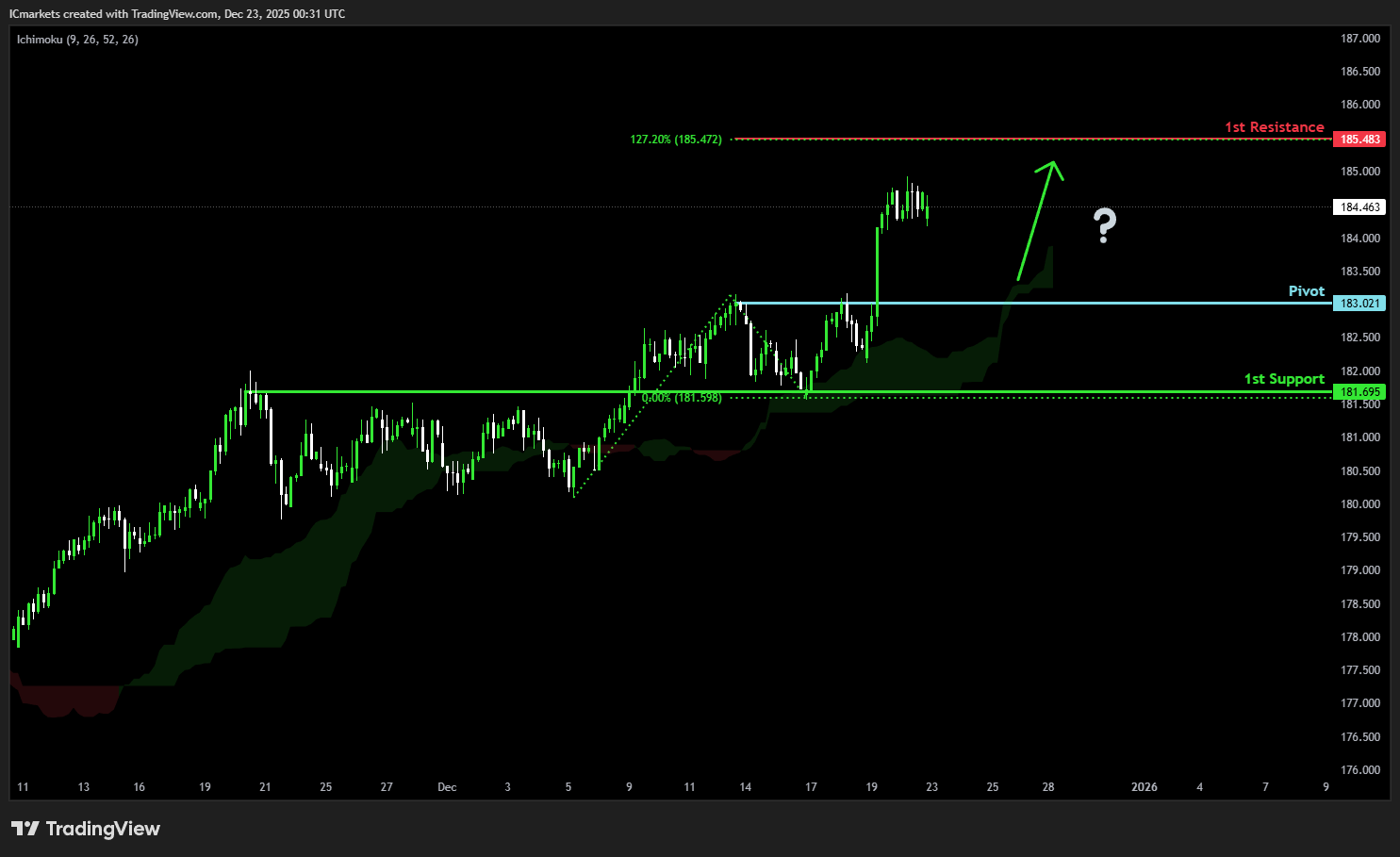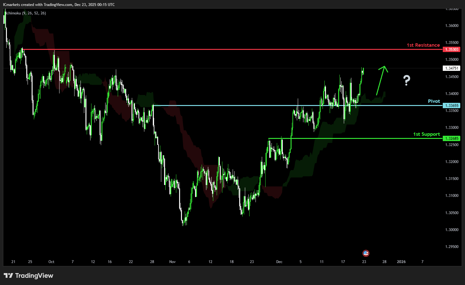 The price could see a short-term pullback toward the pivot before rising again toward the 1st resistance.