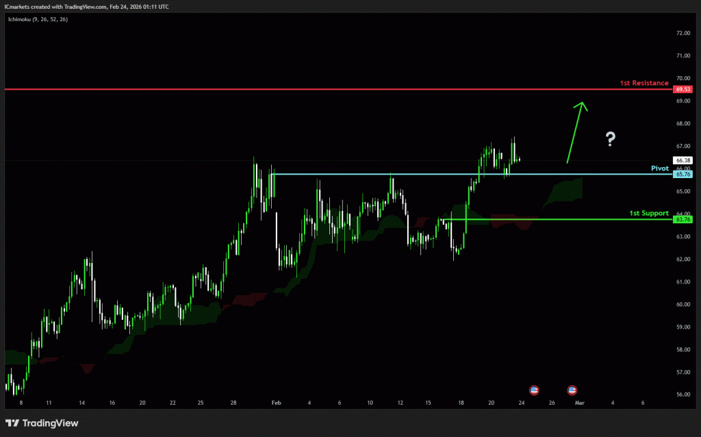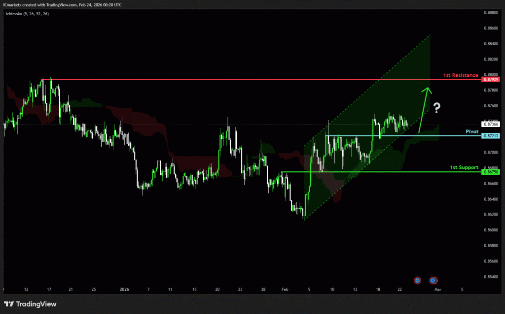 The price could see a short-term pullback toward the pivot before rising again toward the 1st resistance.
