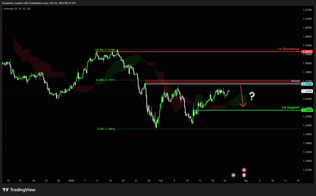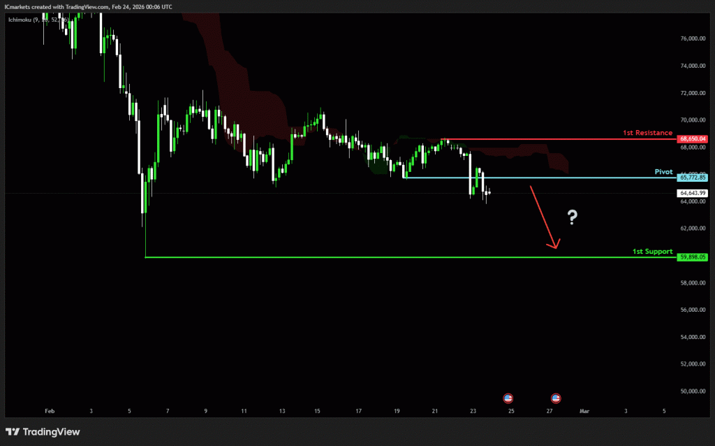 The price could see a short-term pullback toward the pivot before continuing its bearish move down toward the 1st support.