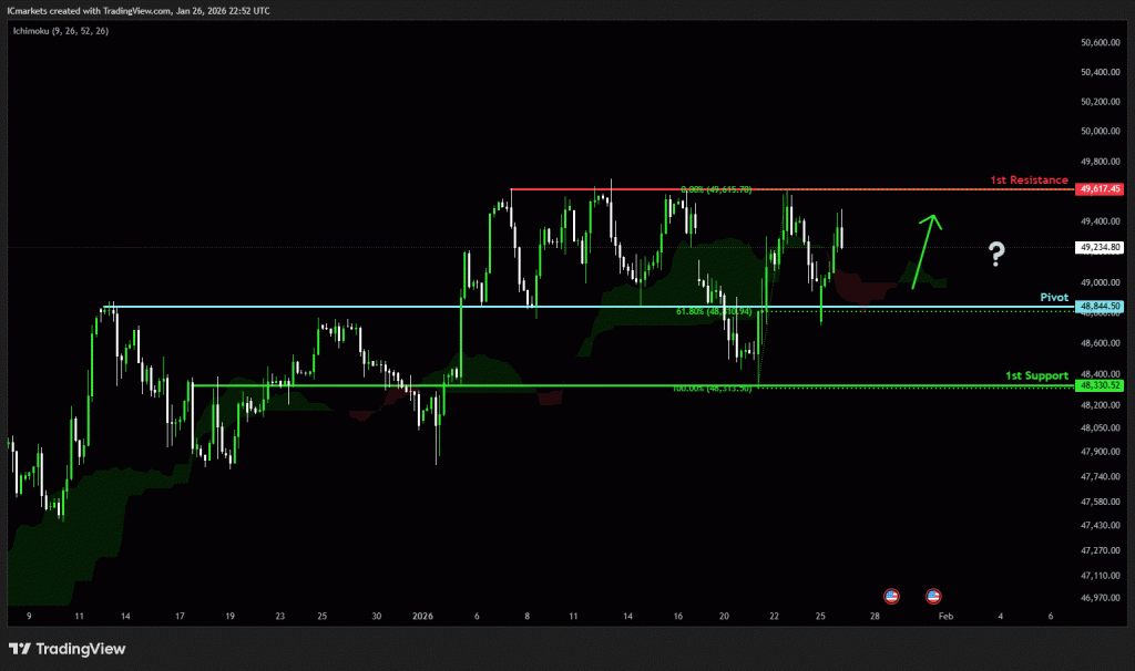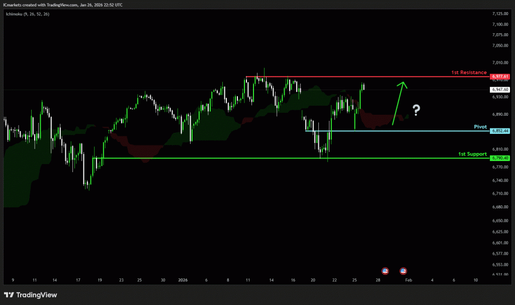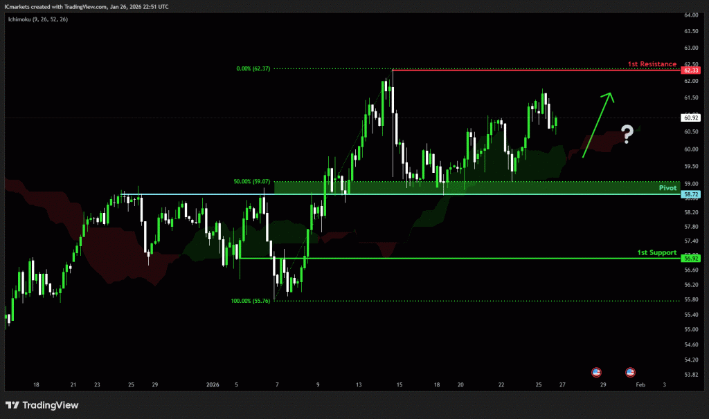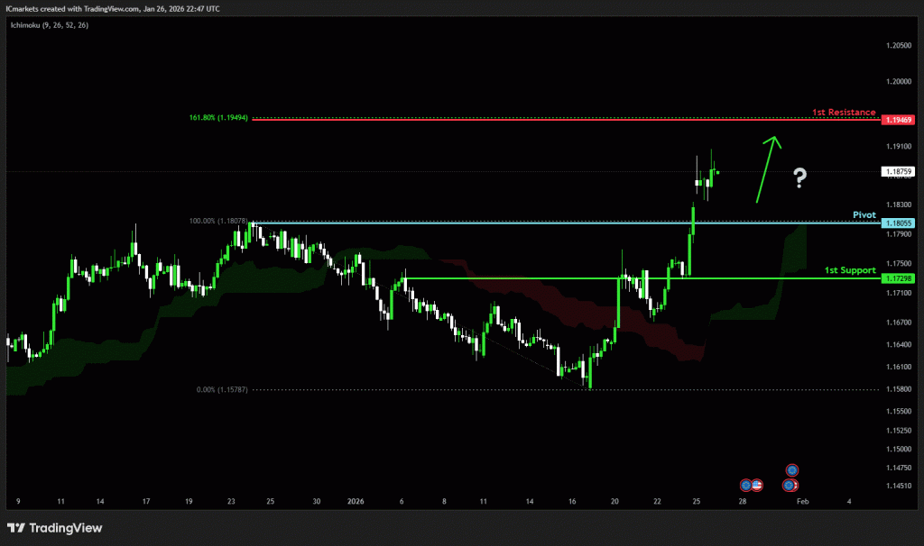 The price could see a short-term pullback toward the pivot before continuing its bullish move toward the 1st resistance
