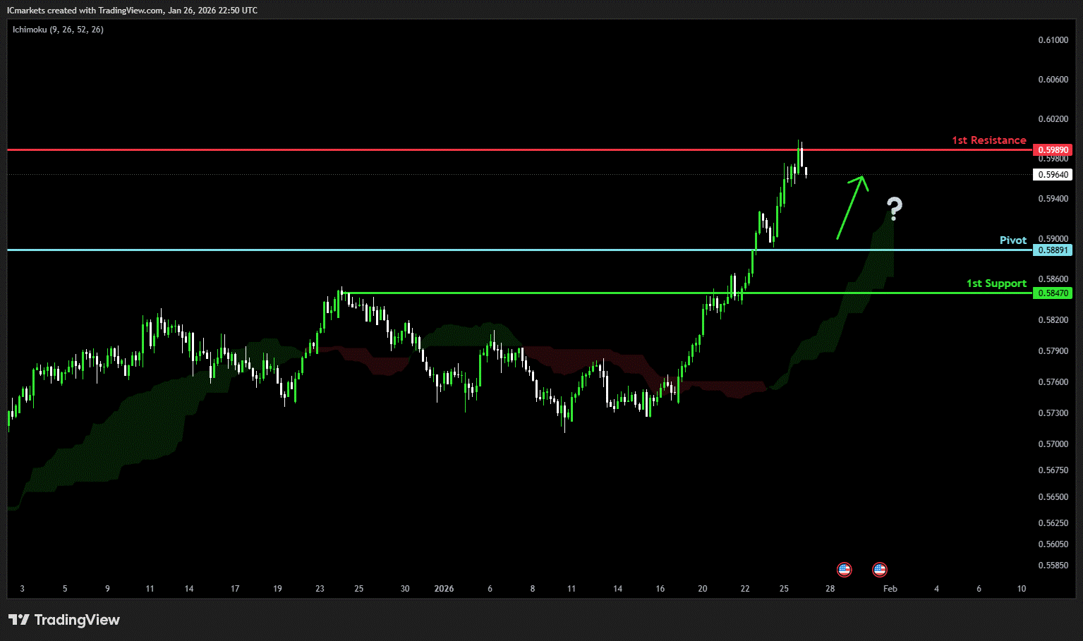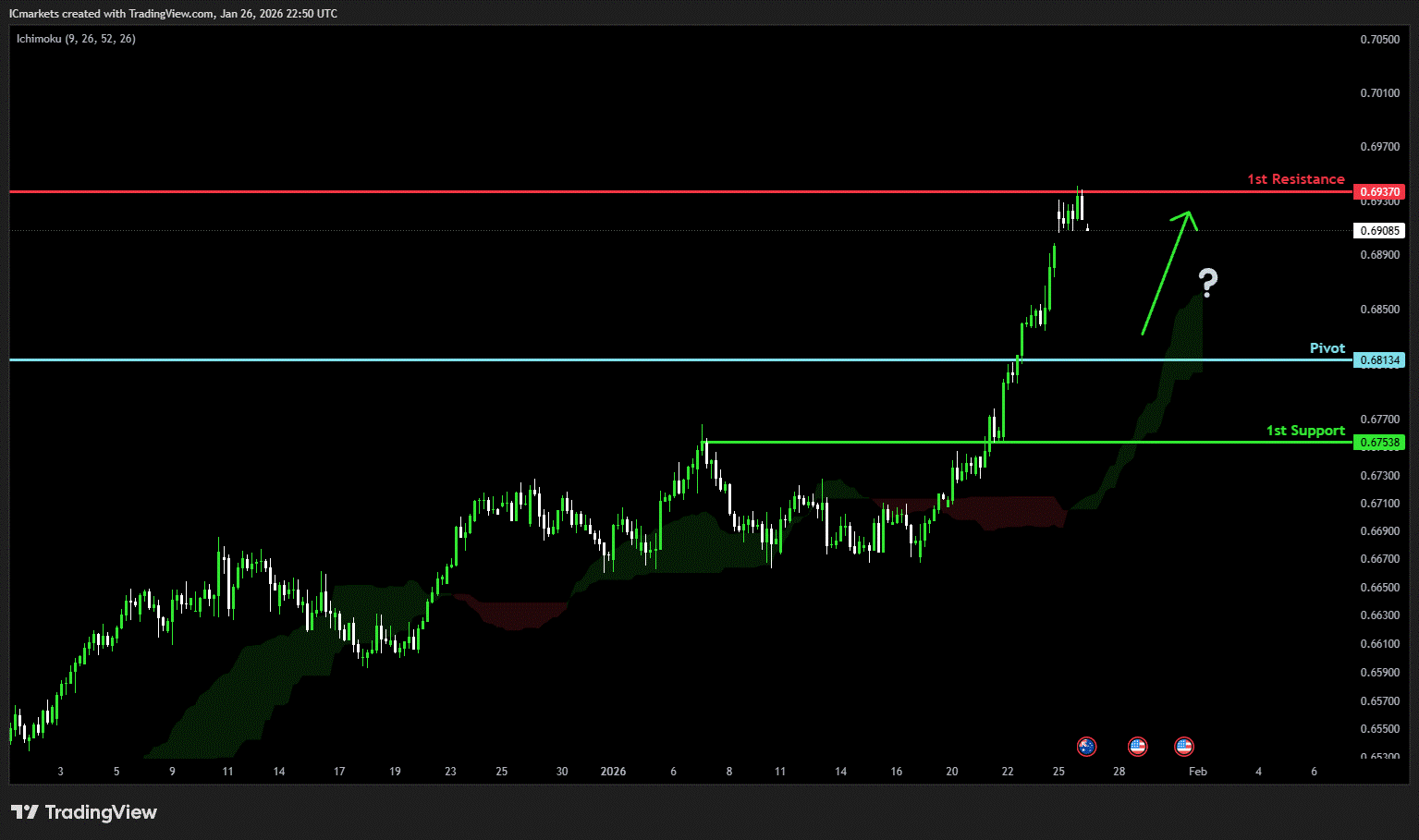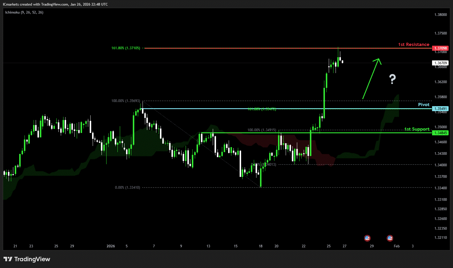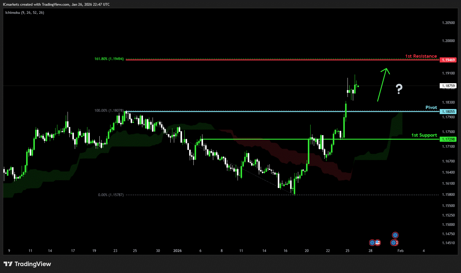 The price could see a short-term pullback toward the pivot before continuing its bullish move toward the 1st resistance