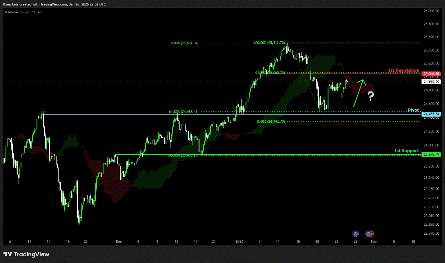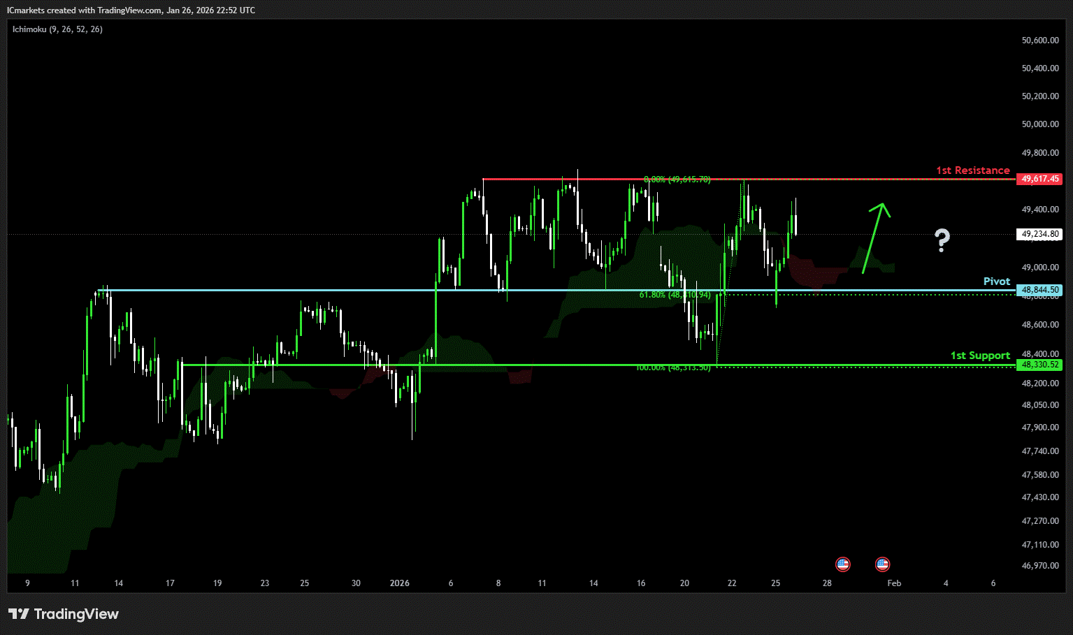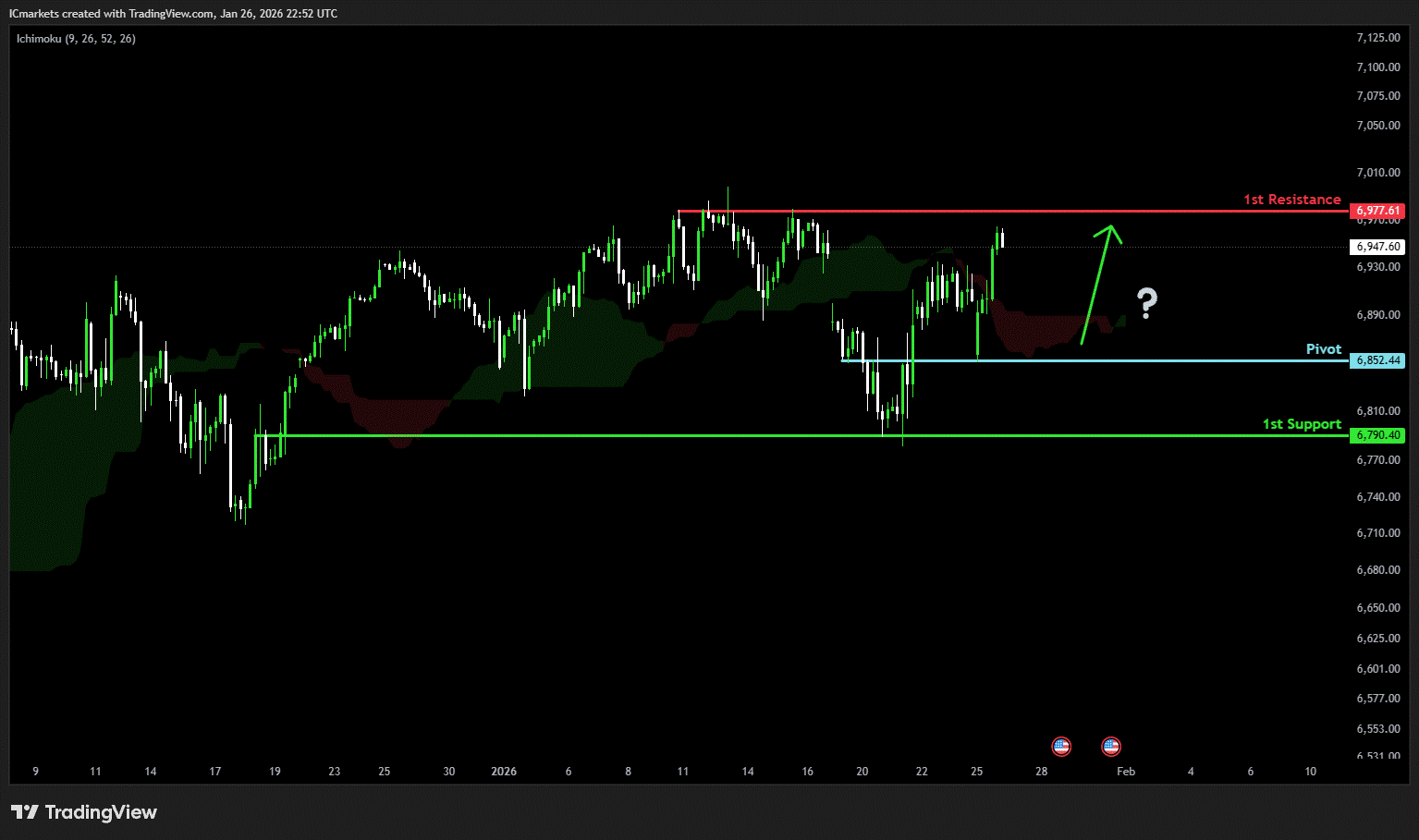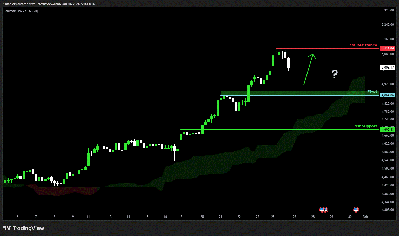 The price could see a short-term pullback toward the pivot before continuing its bullish move toward the 1st resistance