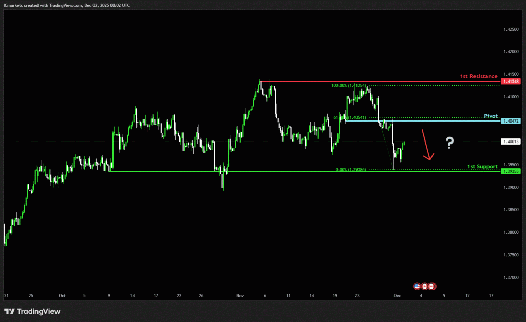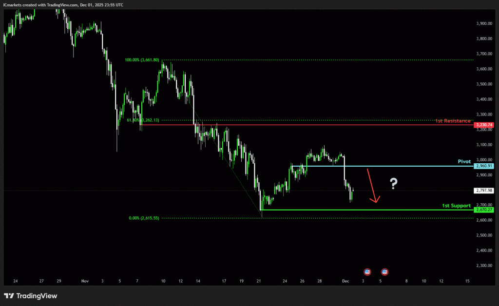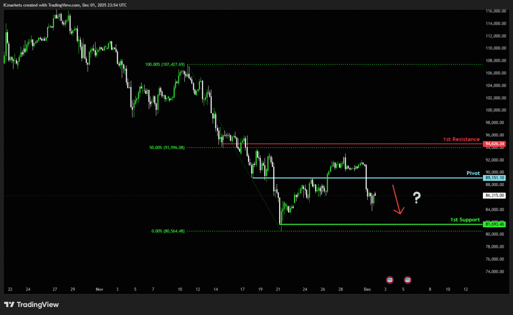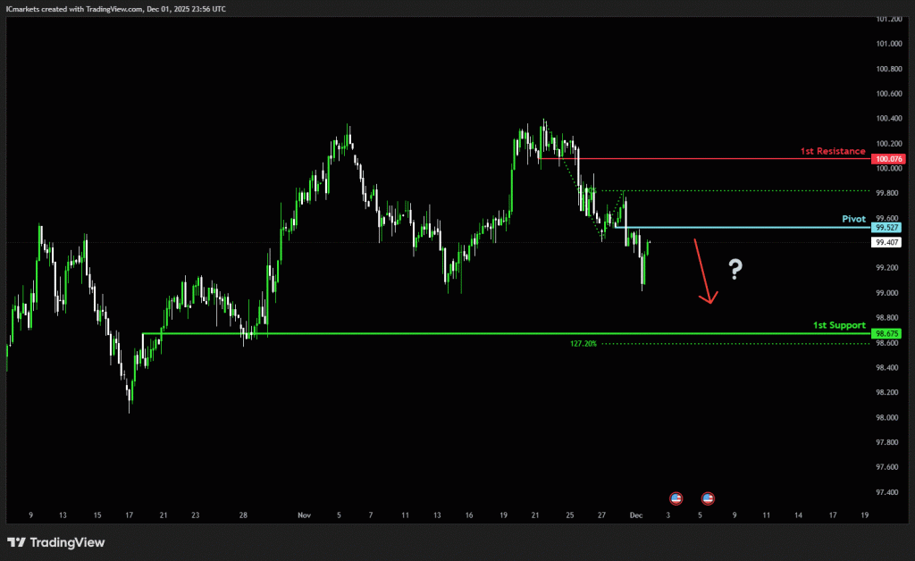 The price could see a short-term pullback toward the pivot before continuing its bearish move down toward the 1st support.