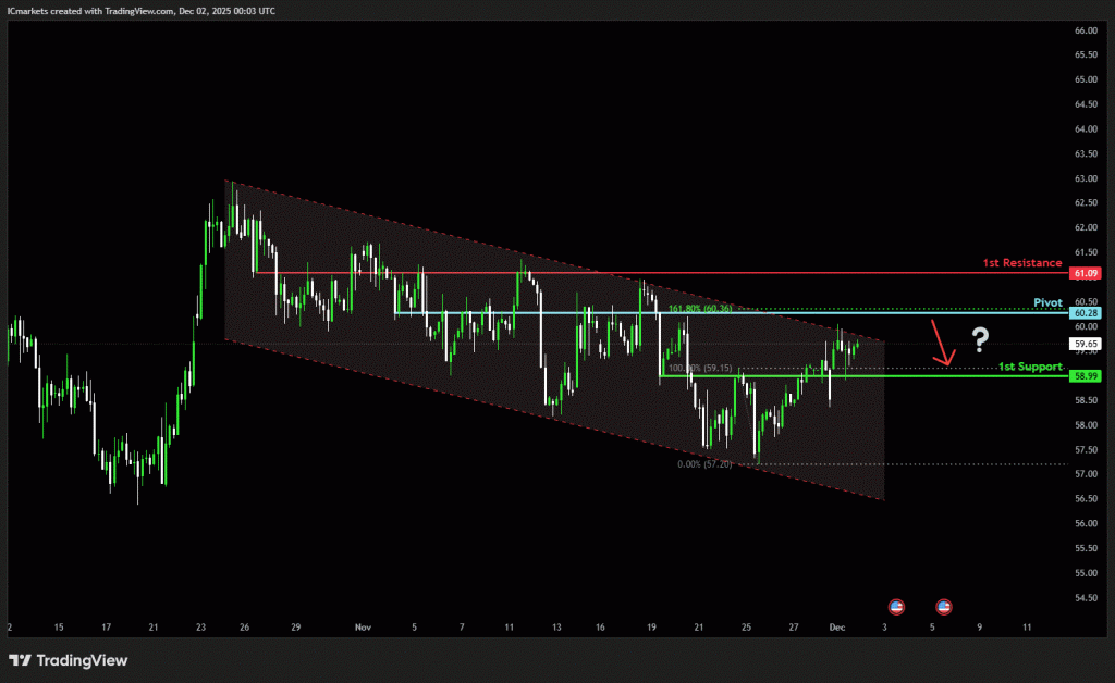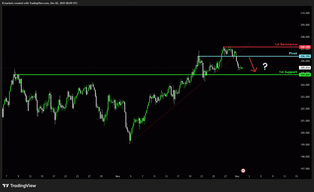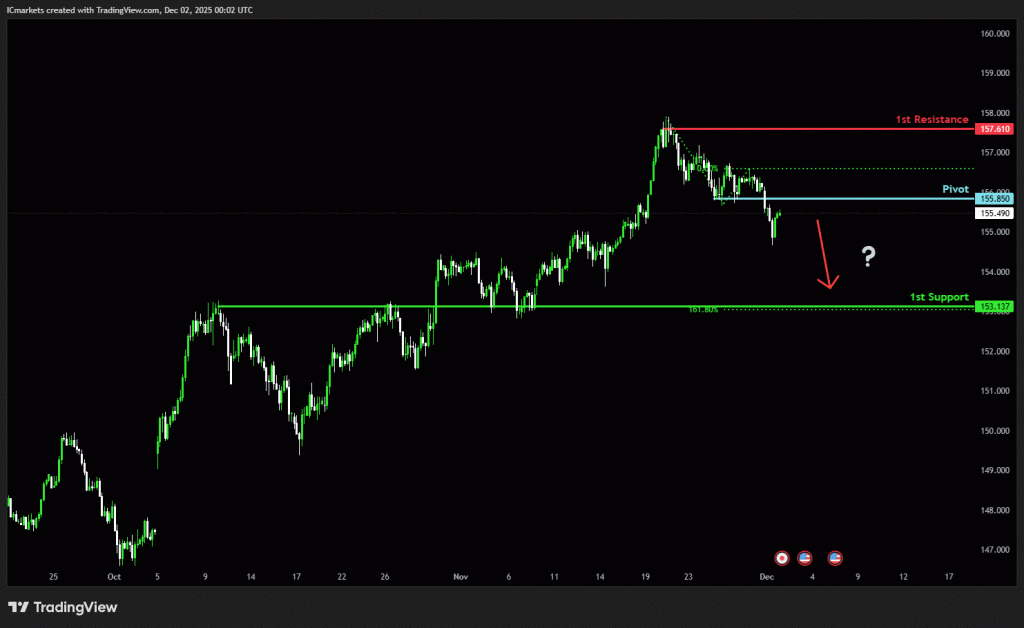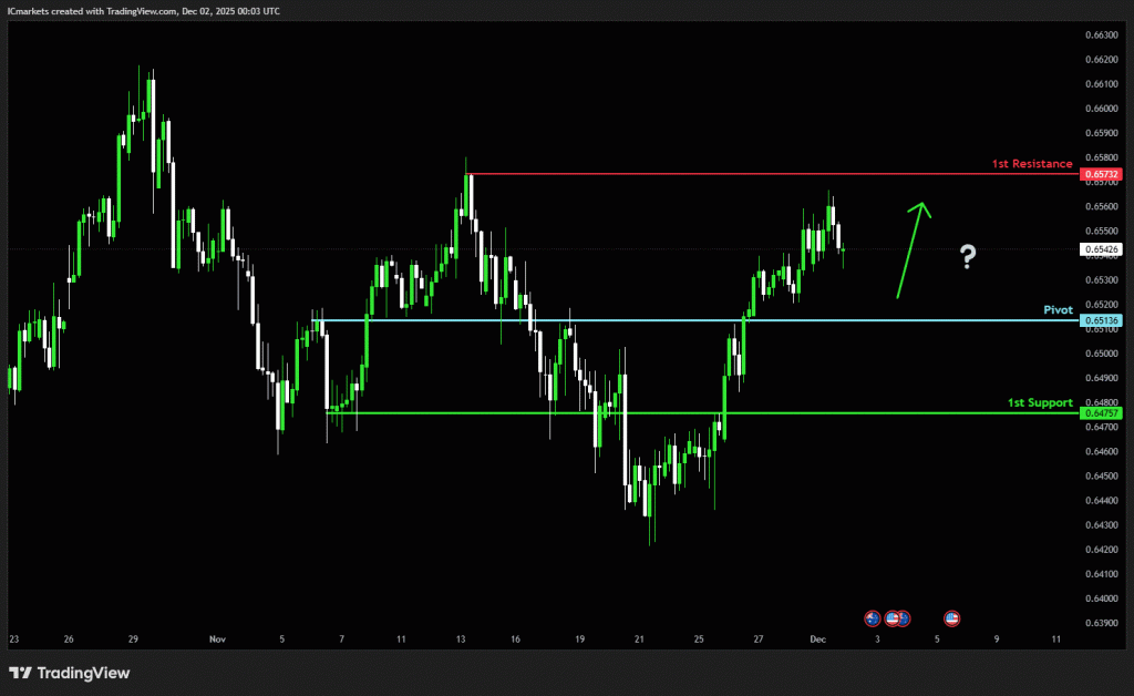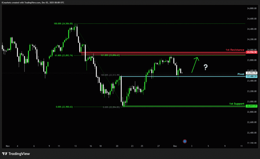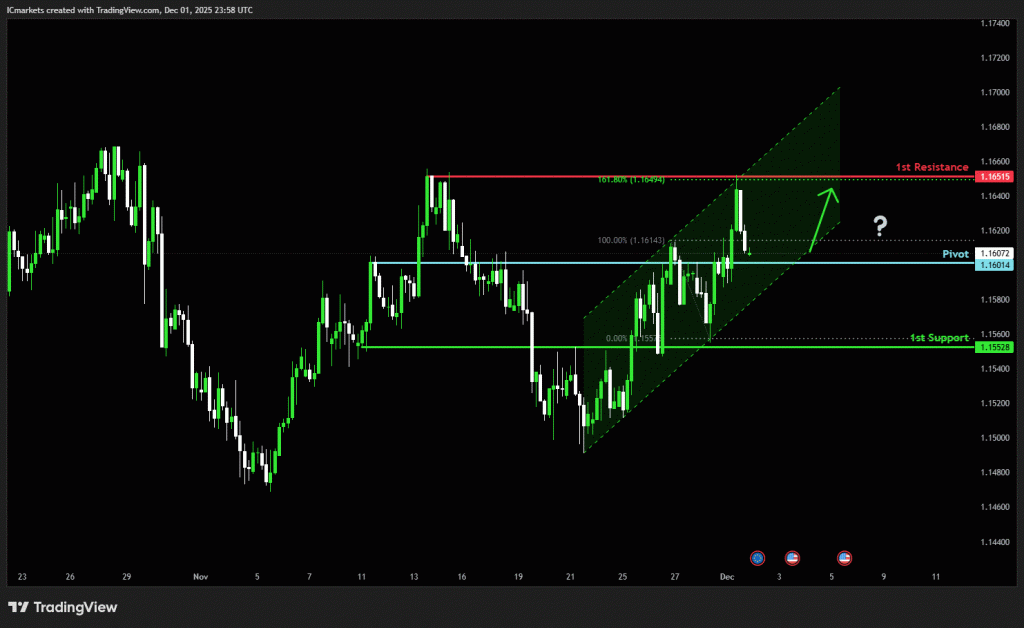 The price could see a short-term pullback toward the pivot before rising again toward the 1st resistance.