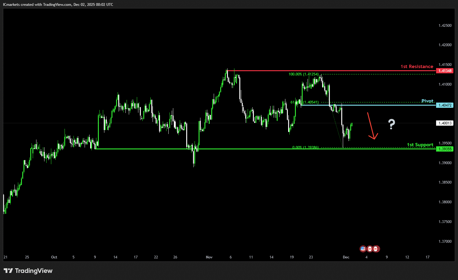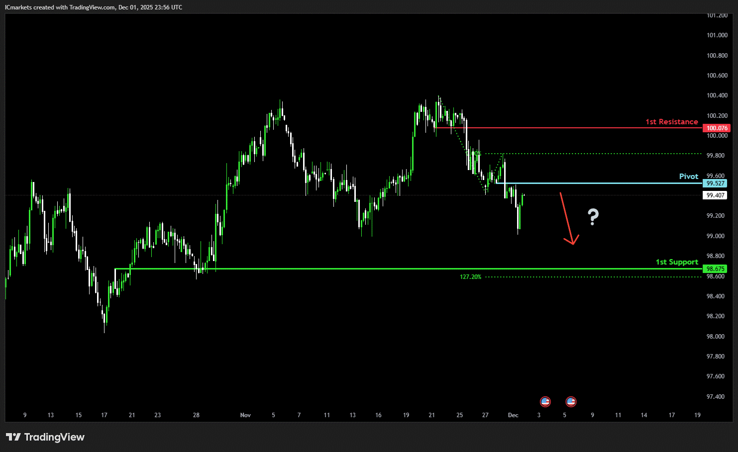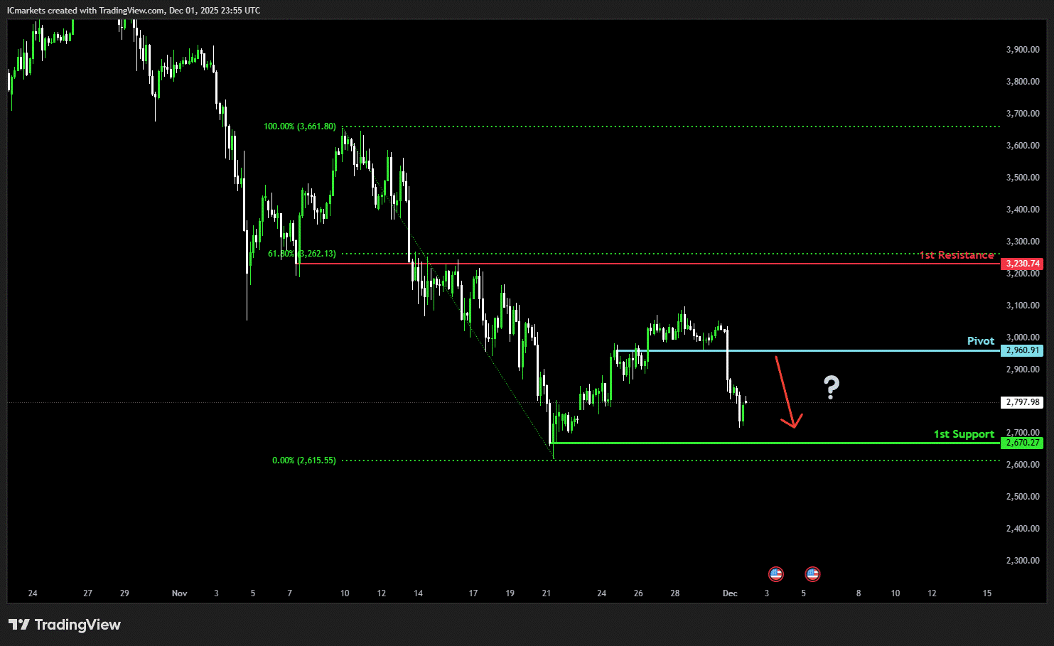 The price could see a short-term pullback toward the pivot before continuing its bearish move down toward the 1st support.
