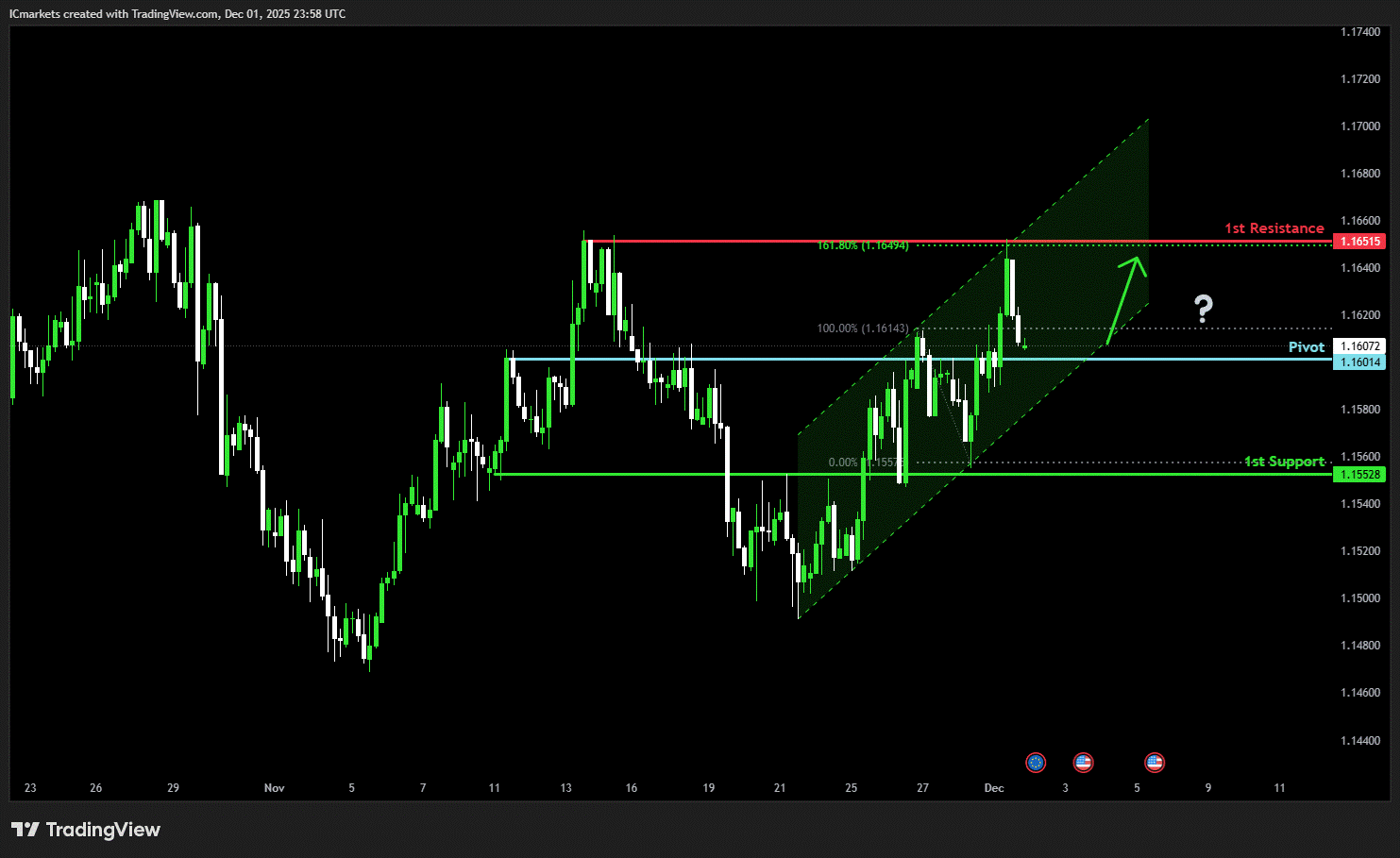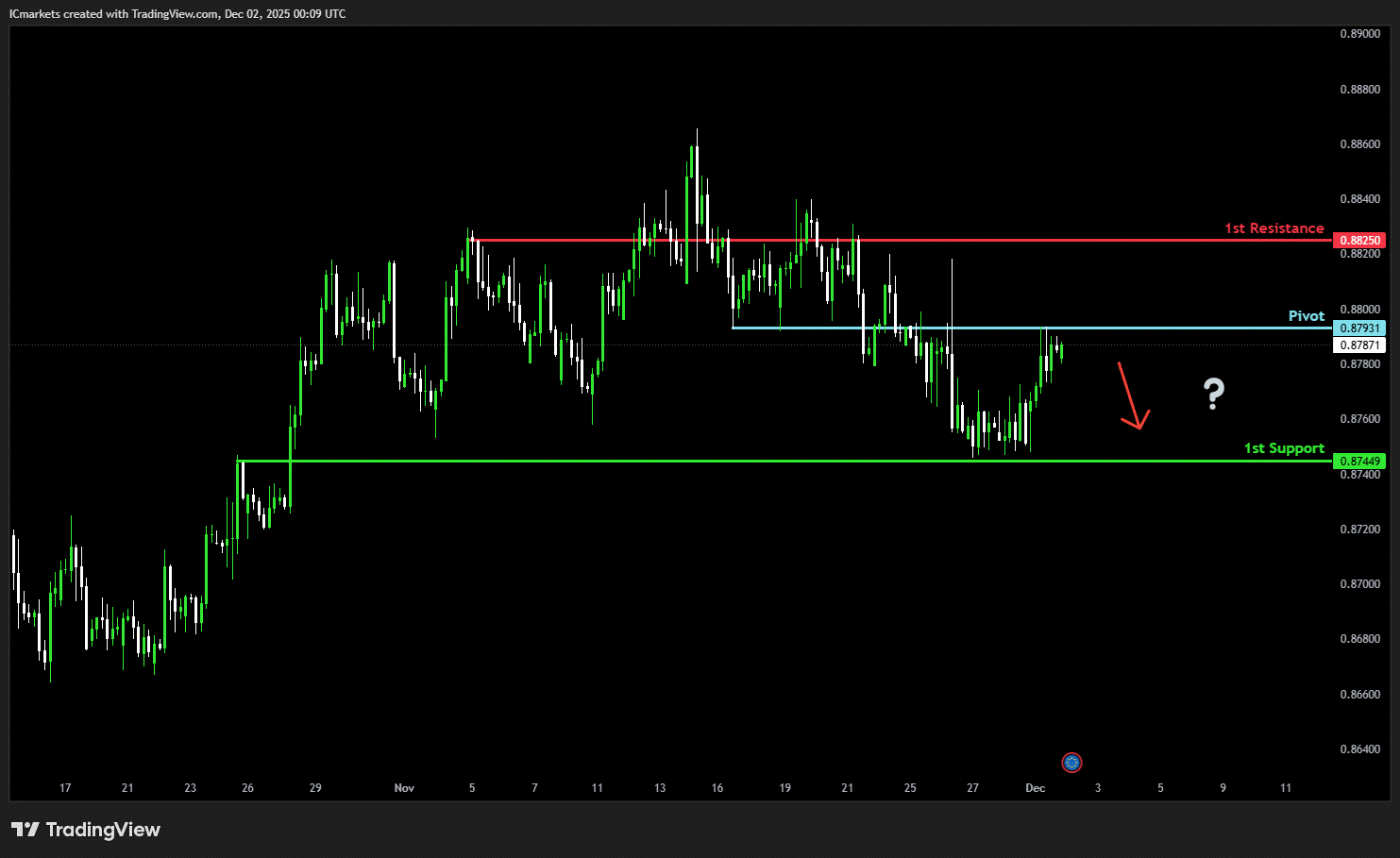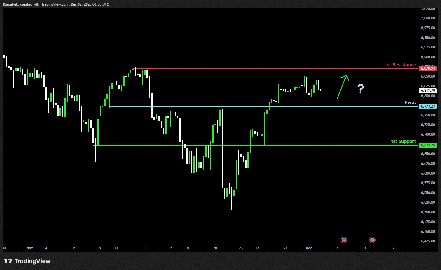The price could see a short-term pullback toward the pivot before rising again toward the 1st resistance.