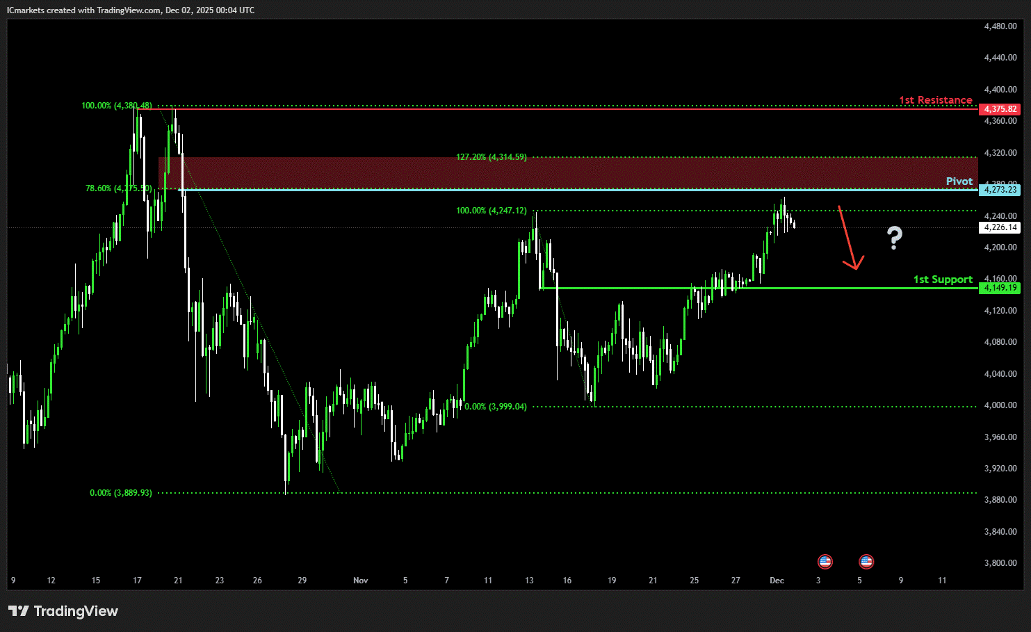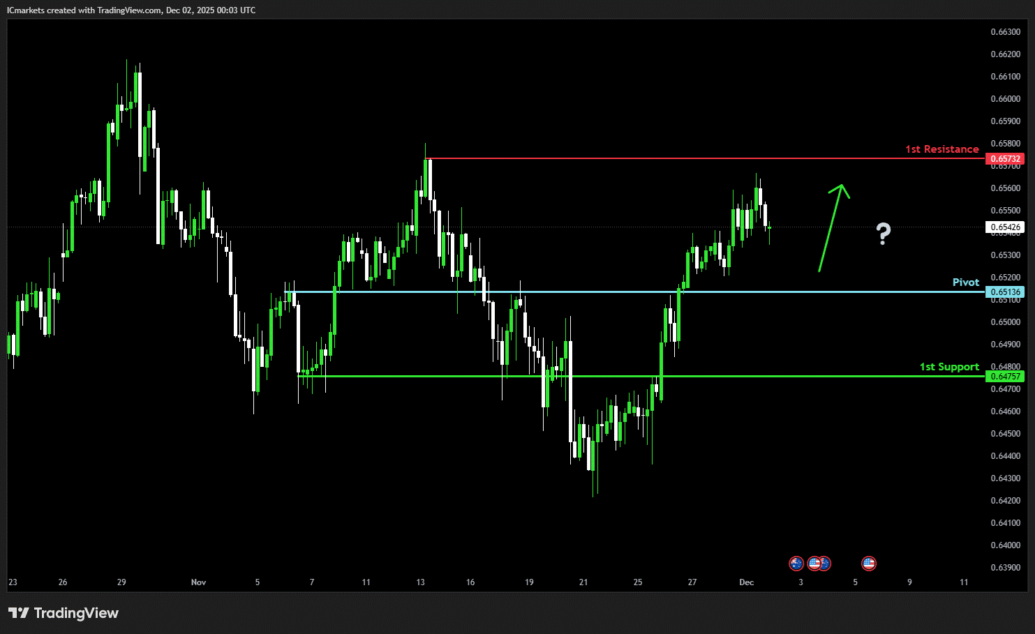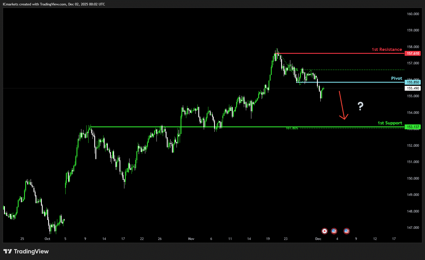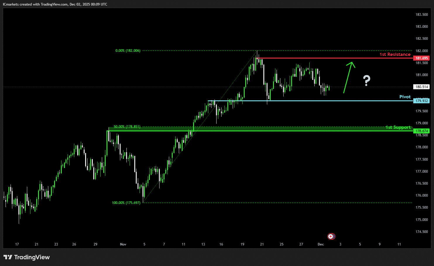 The price could see a short-term pullback toward the pivot before rising again toward the 1st resistance.