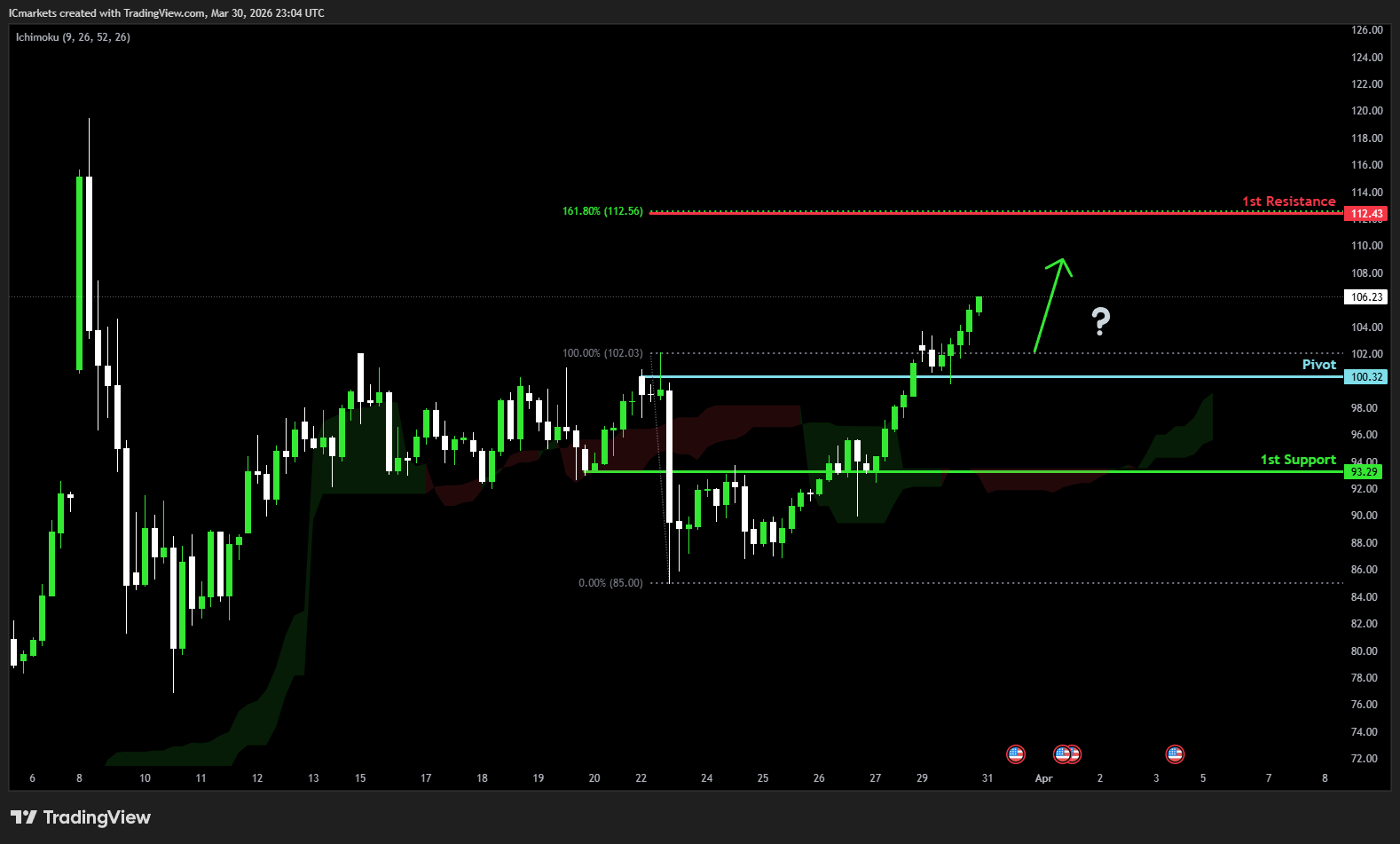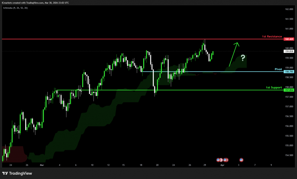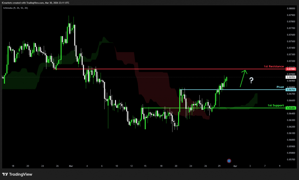 The price could see a short-term pullback toward the pivot before rising again toward the 1st resistance.