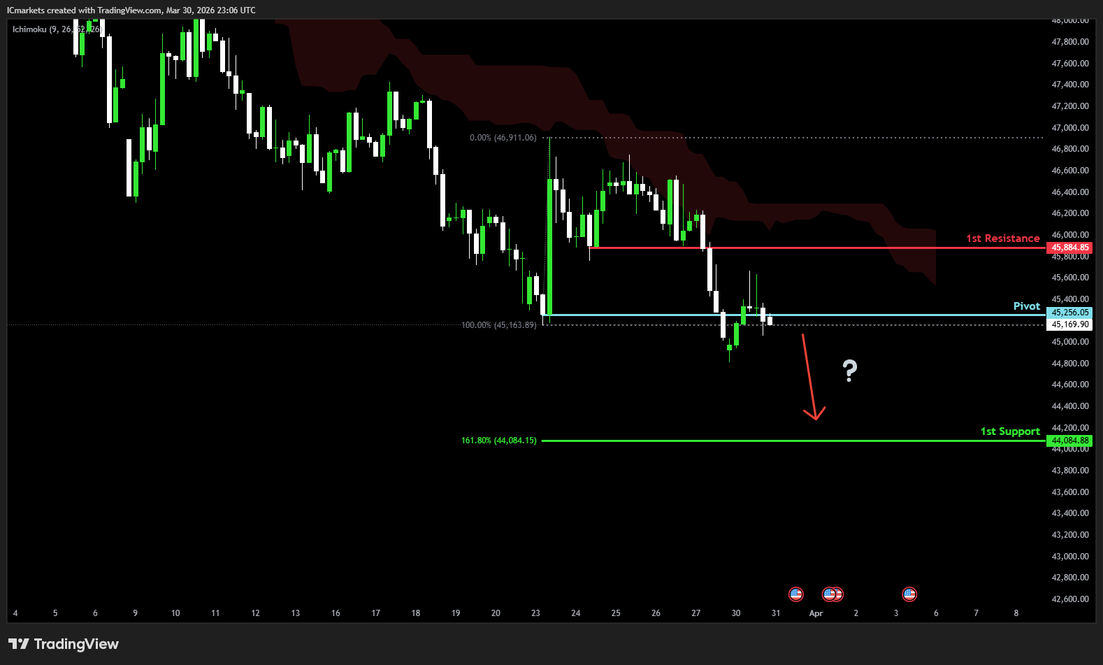 1st resistance: 45,884.85