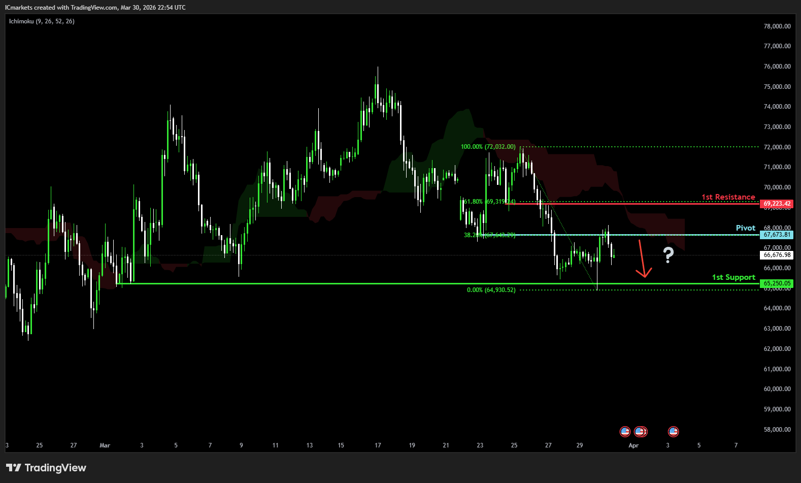 1st resistance: 69,223.42