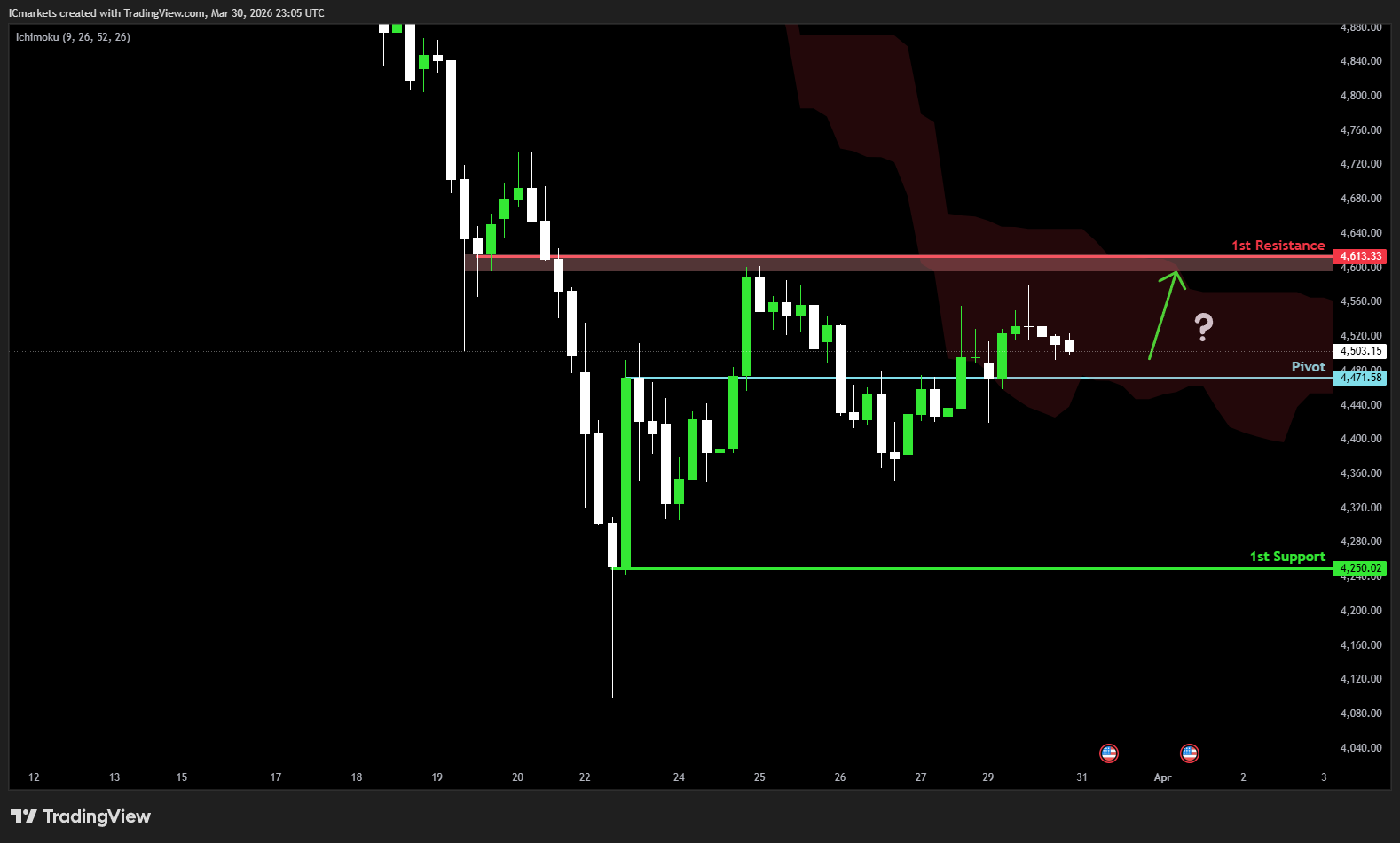 1st resistance: 4,613.33