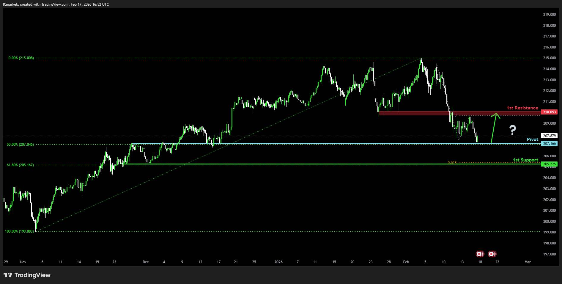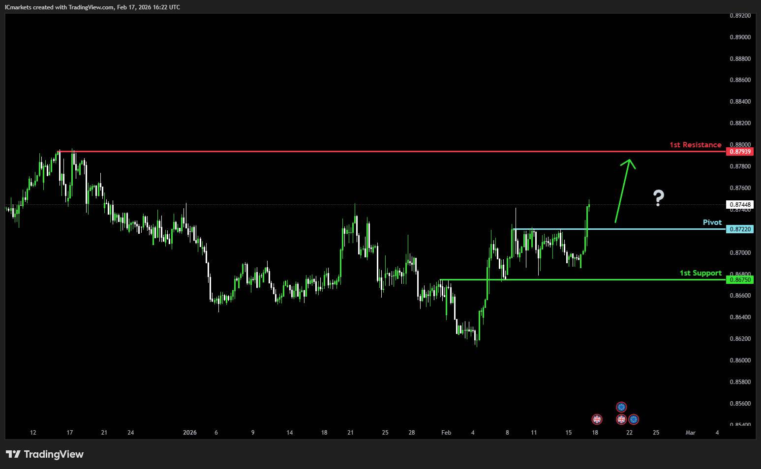 The price could see a short-term pullback toward the pivot before rising again toward the 1st resistance.
