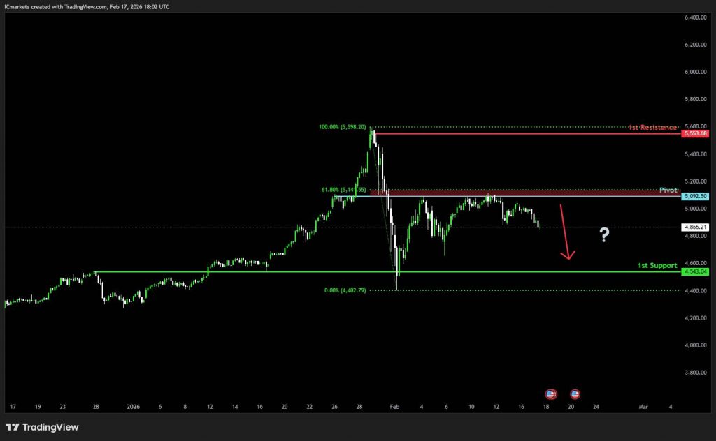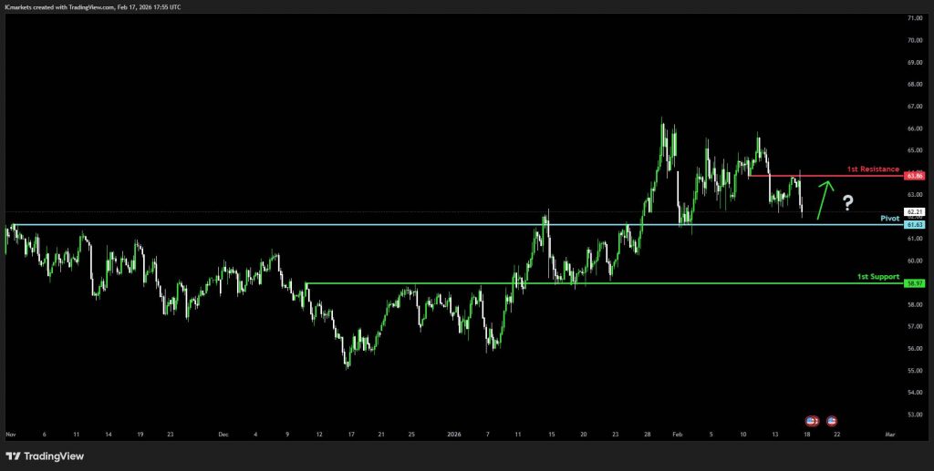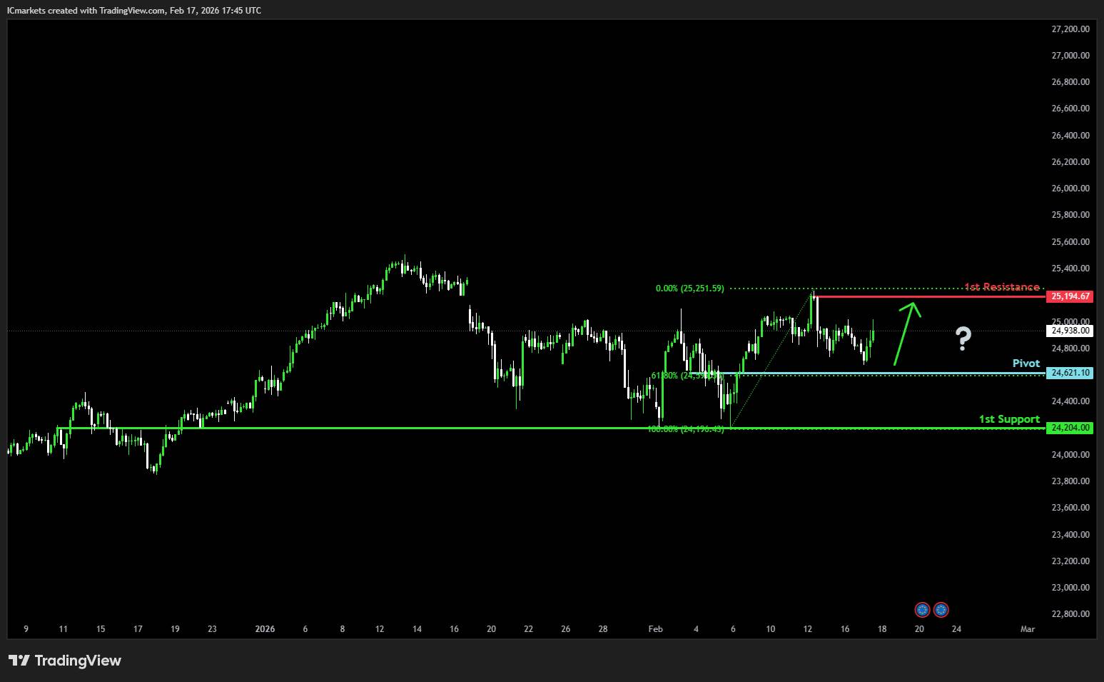Supporting reasons: Identified as a pullback support that aligns with the 61.8% Fibonacci retracement, where renewed buying pressure could emerge and push the price to the 1st resistance.