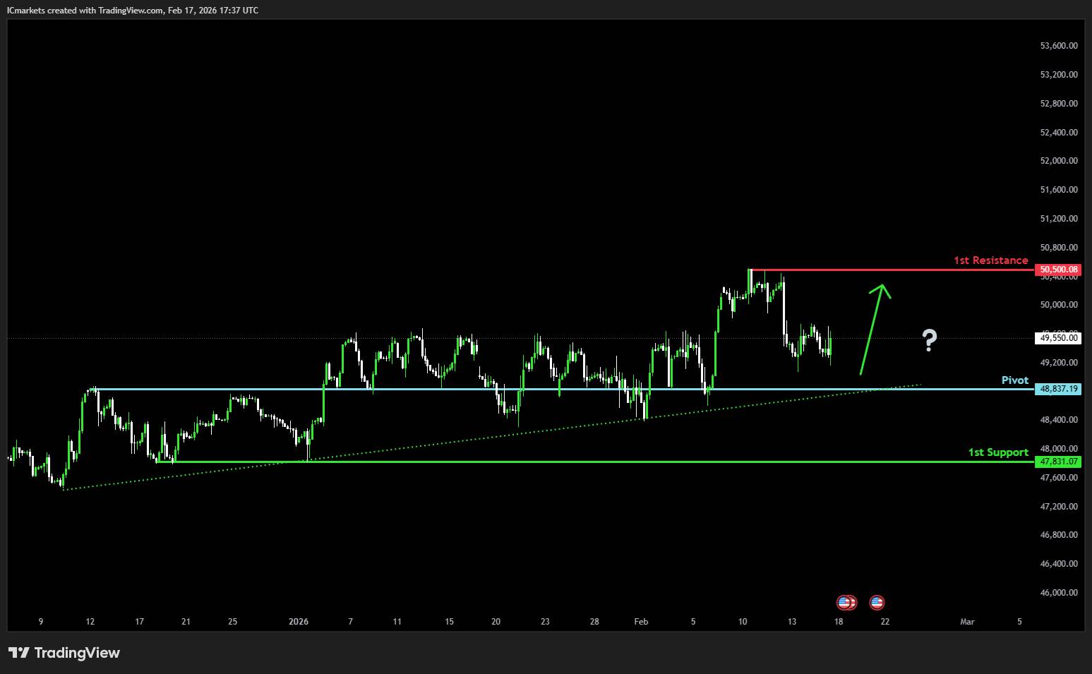 Supporting reasons: Identified as a pullback support that aligns with the 50% Fibonacci retracement, where renewed buying pressure could emerge to push the price higher.