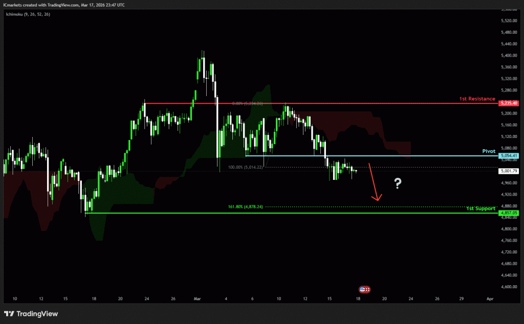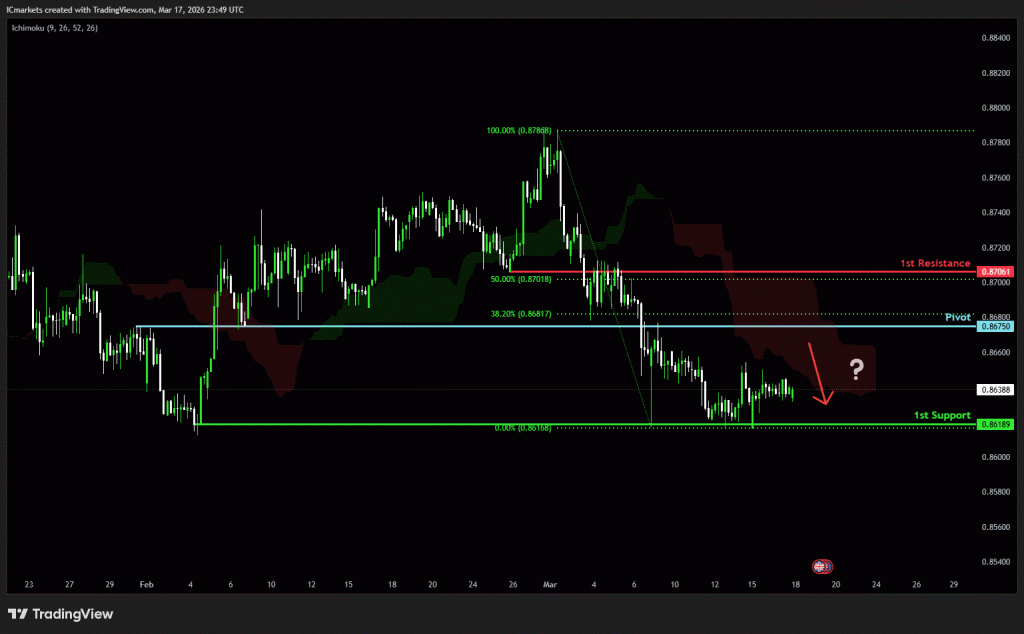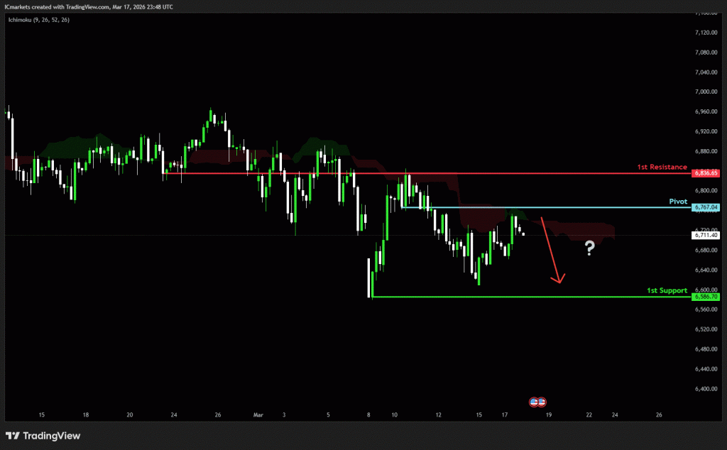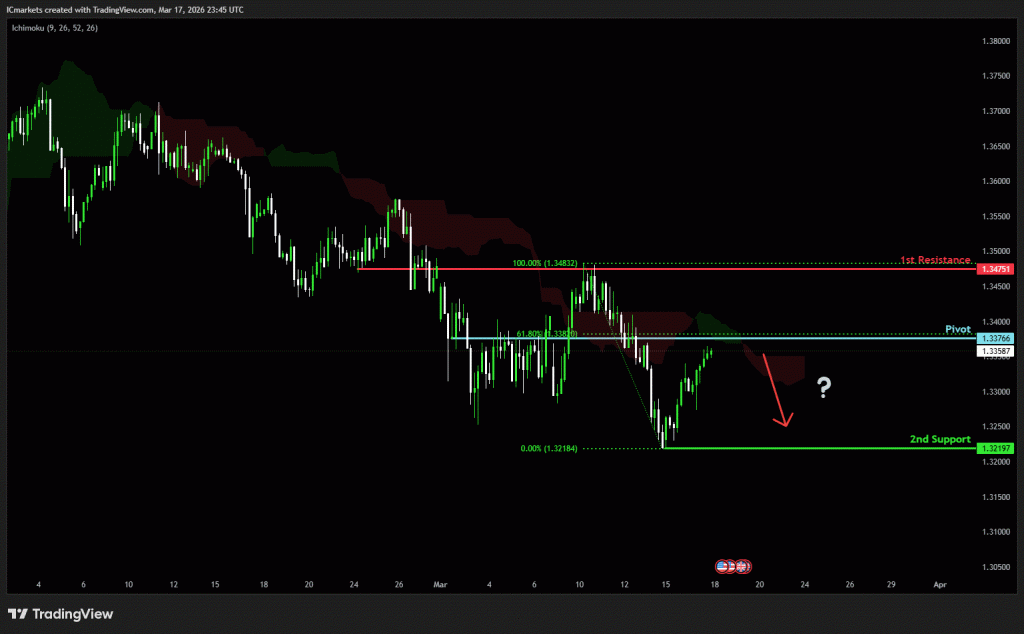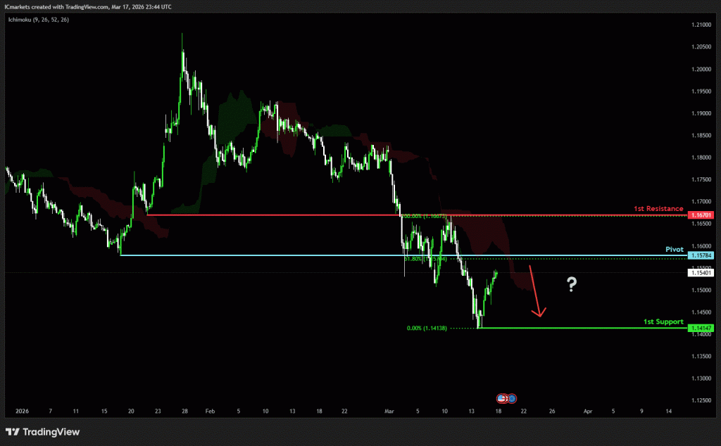 The price could see a short-term pullback toward the pivot before continuing its bearish move down toward the 1st support.