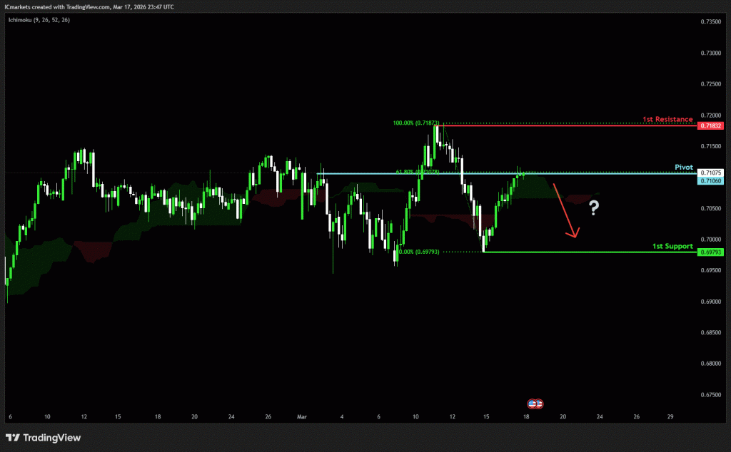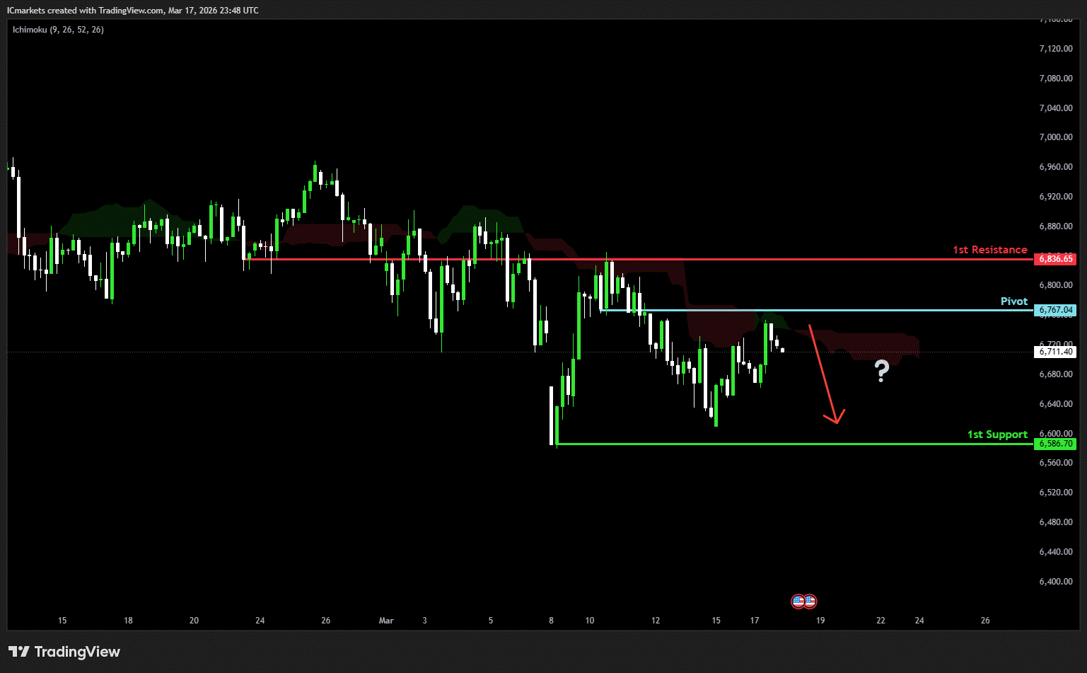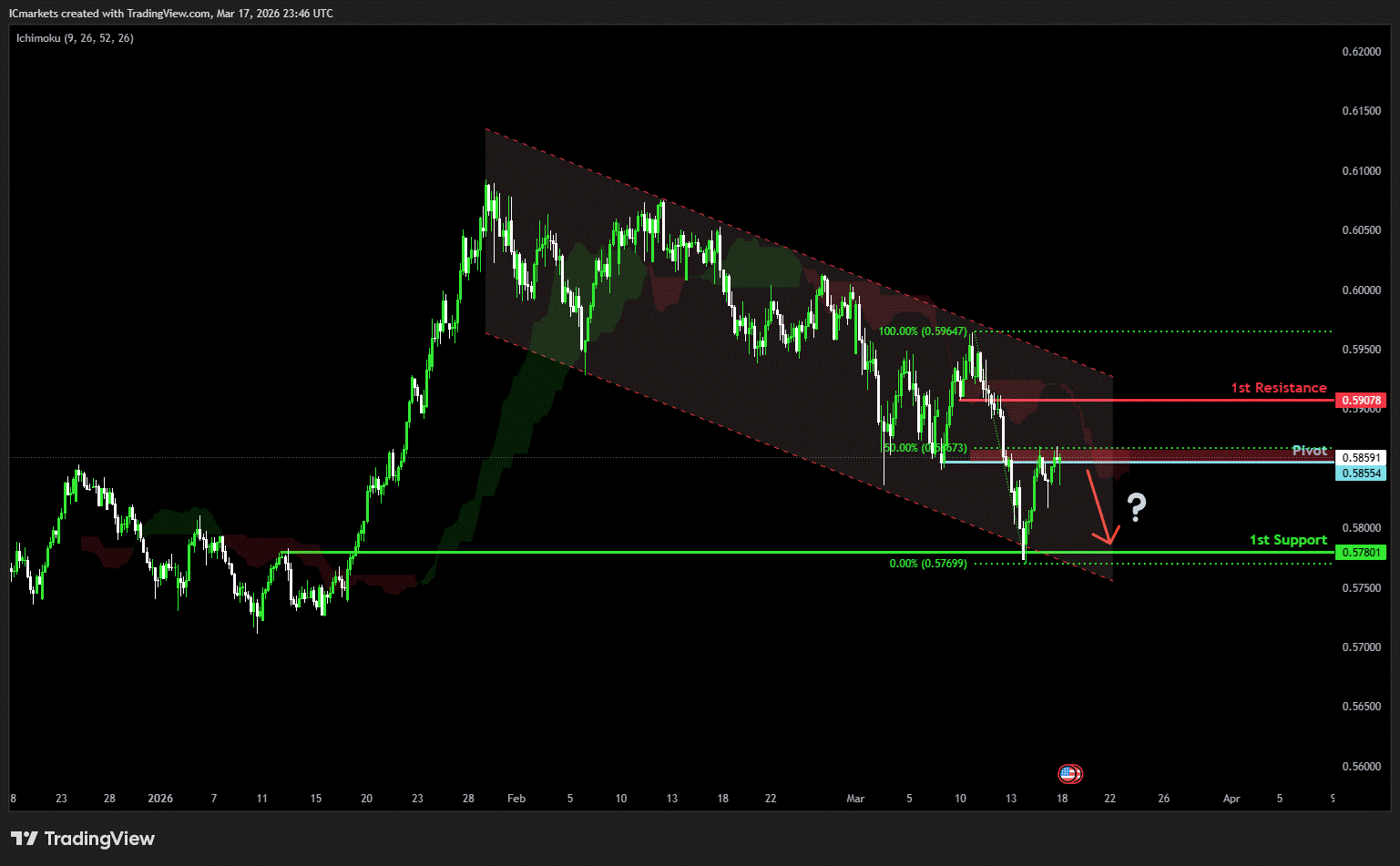 The price could see a short-term pullback toward the pivot before continuing its bearish move down toward the 1st support.