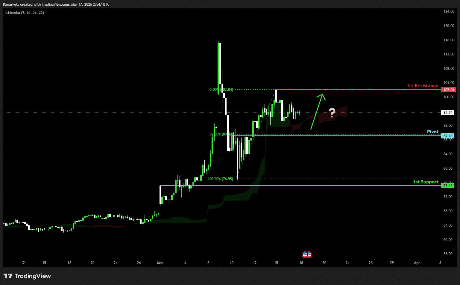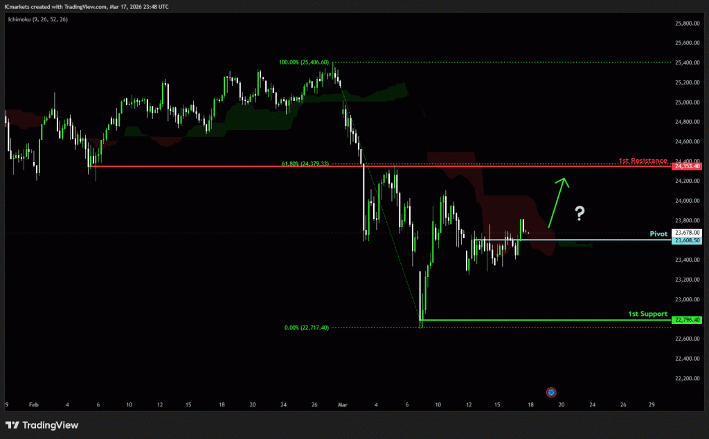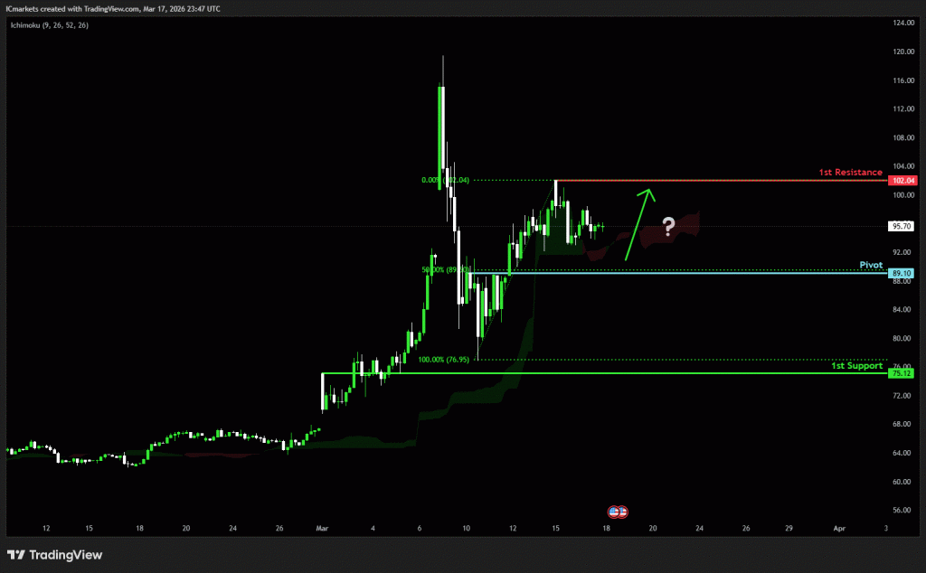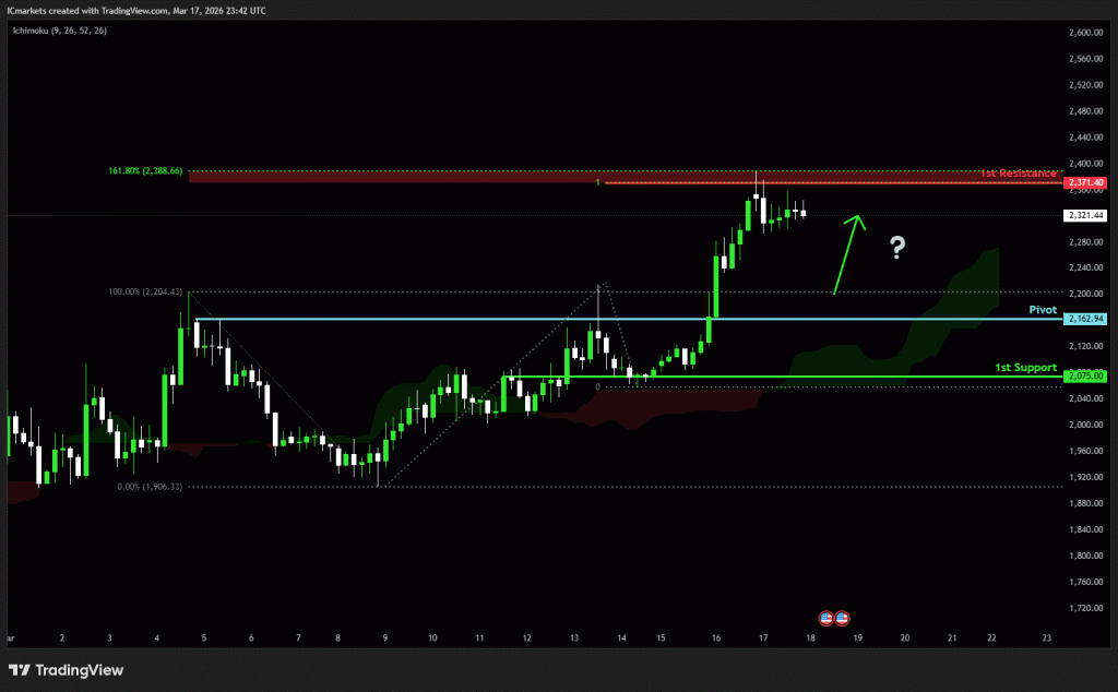 The price could see a short-term pullback toward the pivot before rising again toward the 1st resistance.