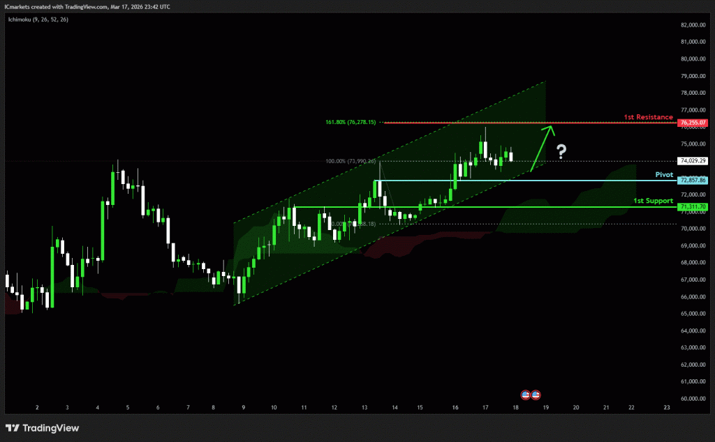 1st resistance: 76,255.07