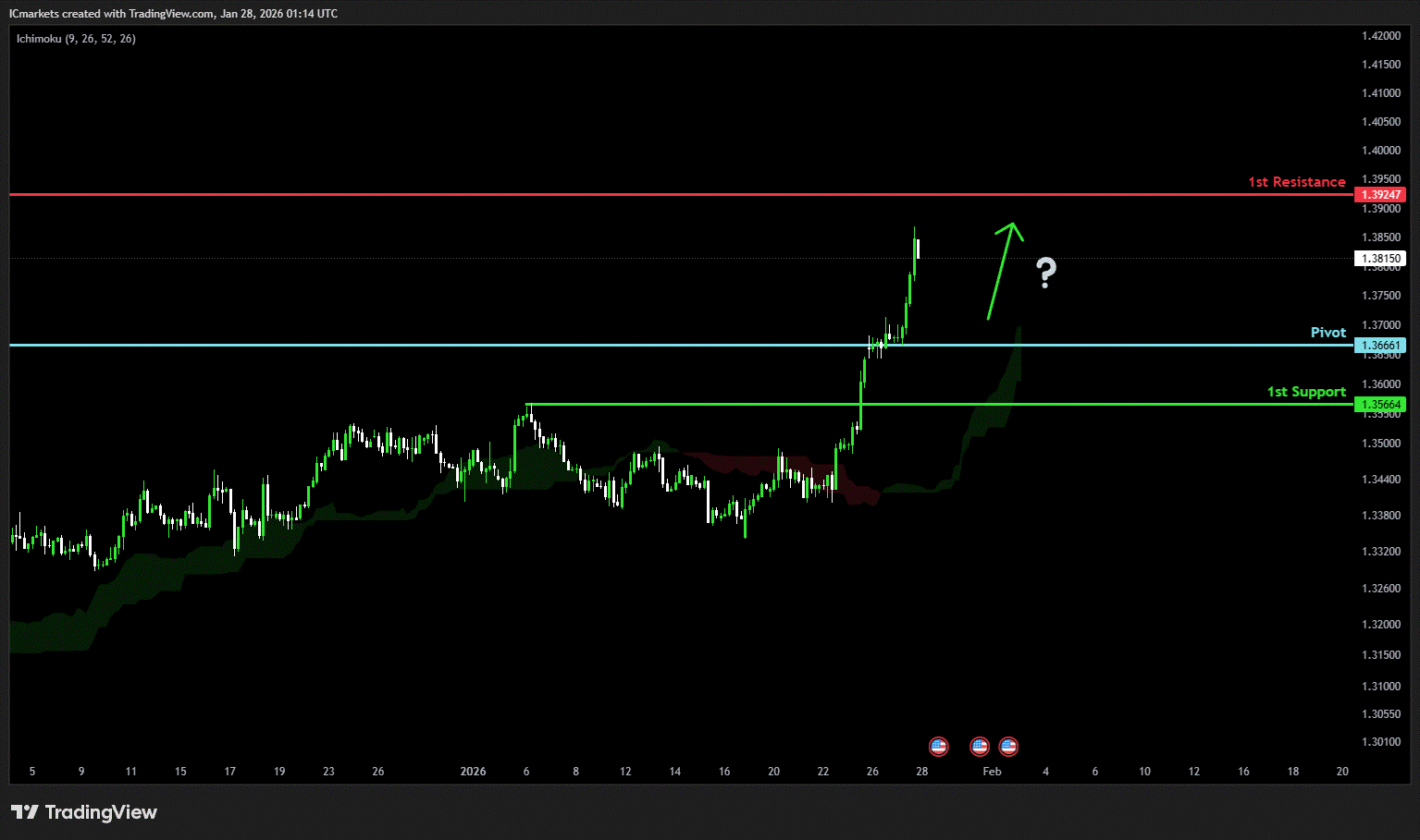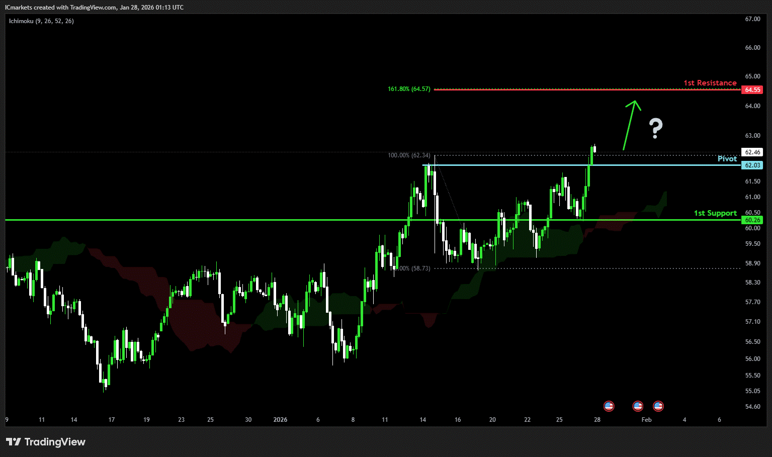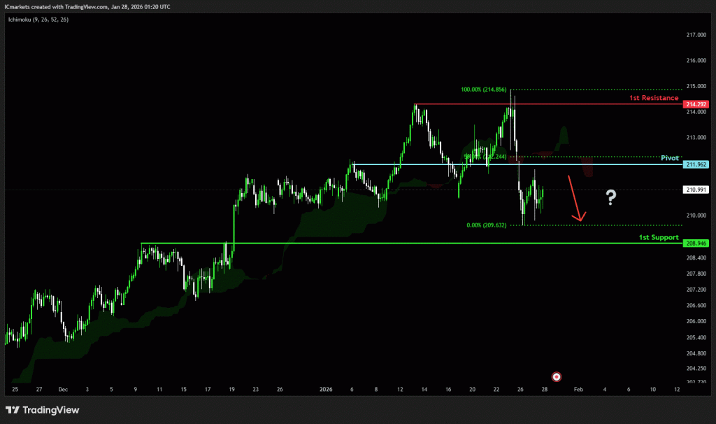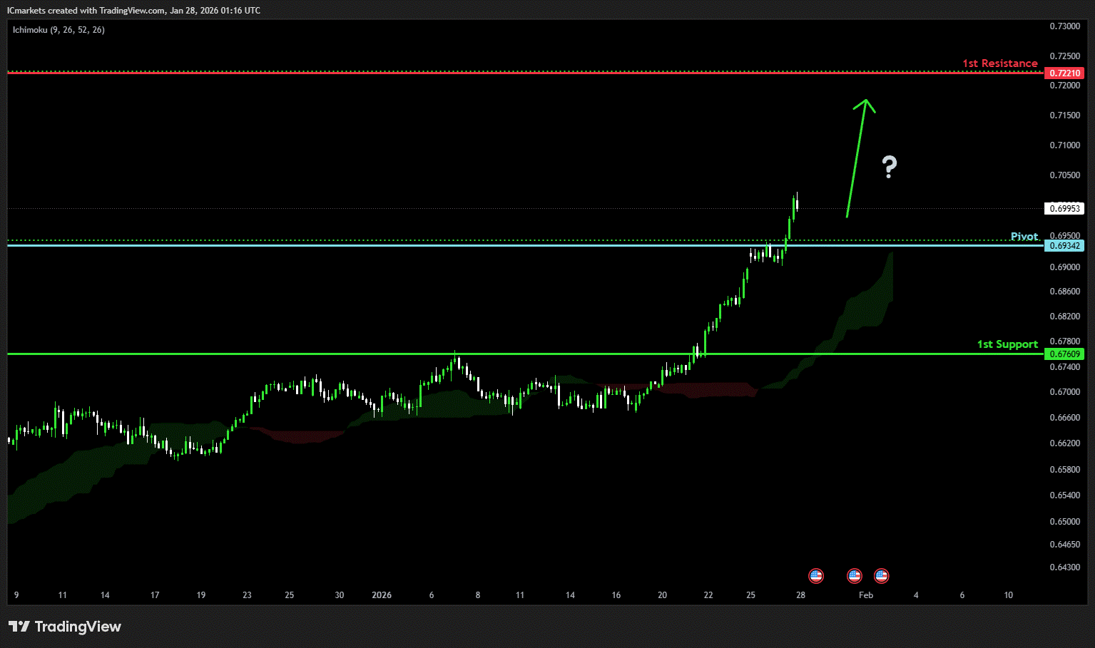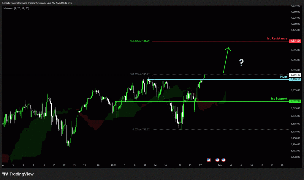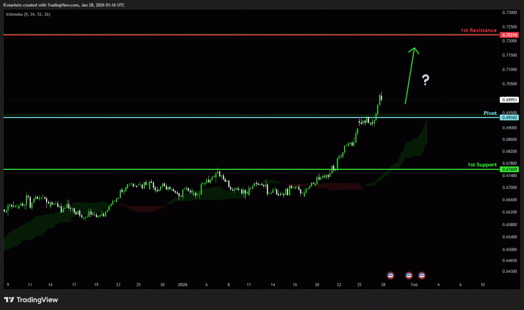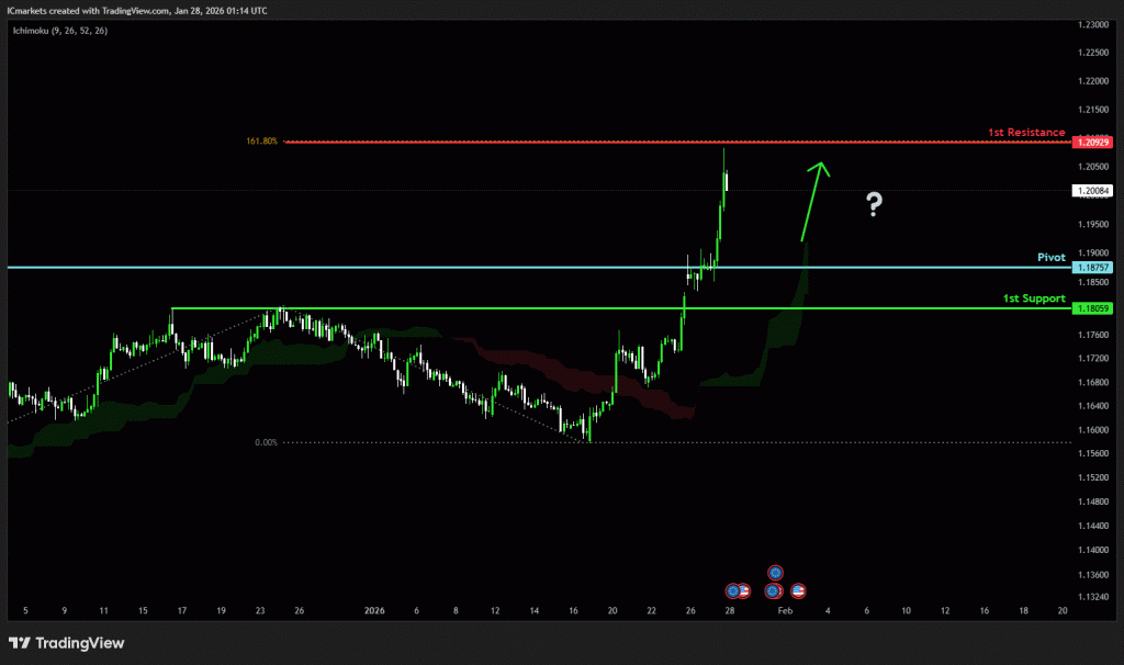 The price could see a short-term pullback toward the pivot before continuing its bullish move toward the 1st resistance
