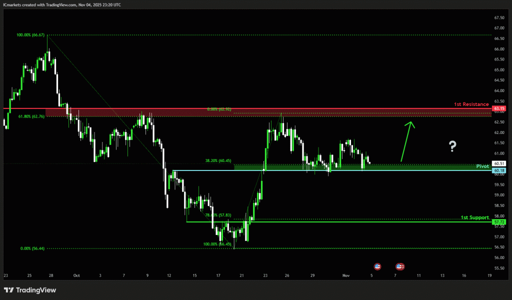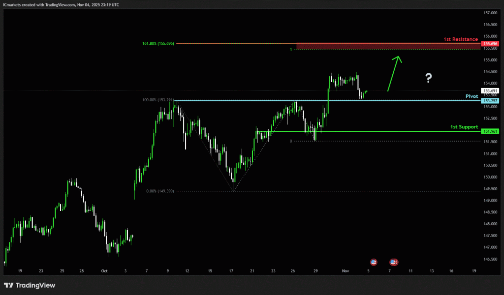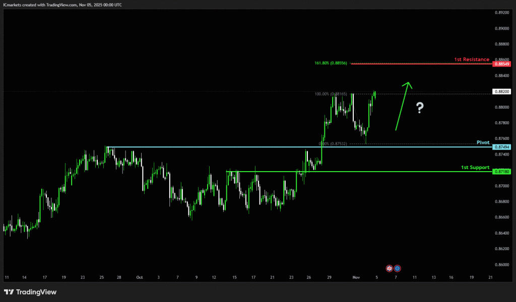 The price could see a short-term pullback toward the pivot before rising again toward the 1st resistance.