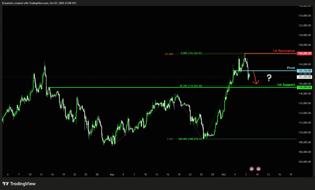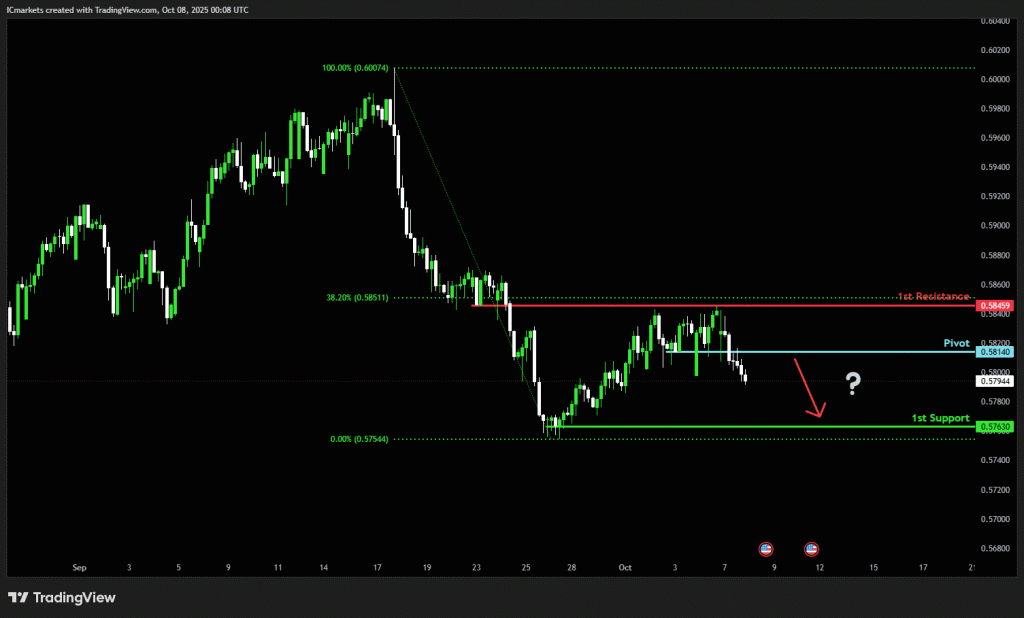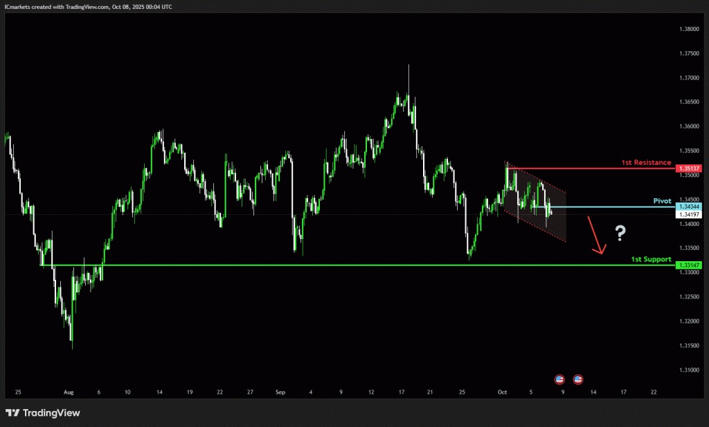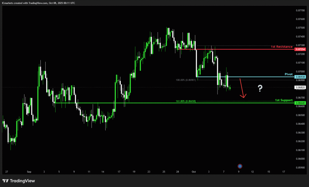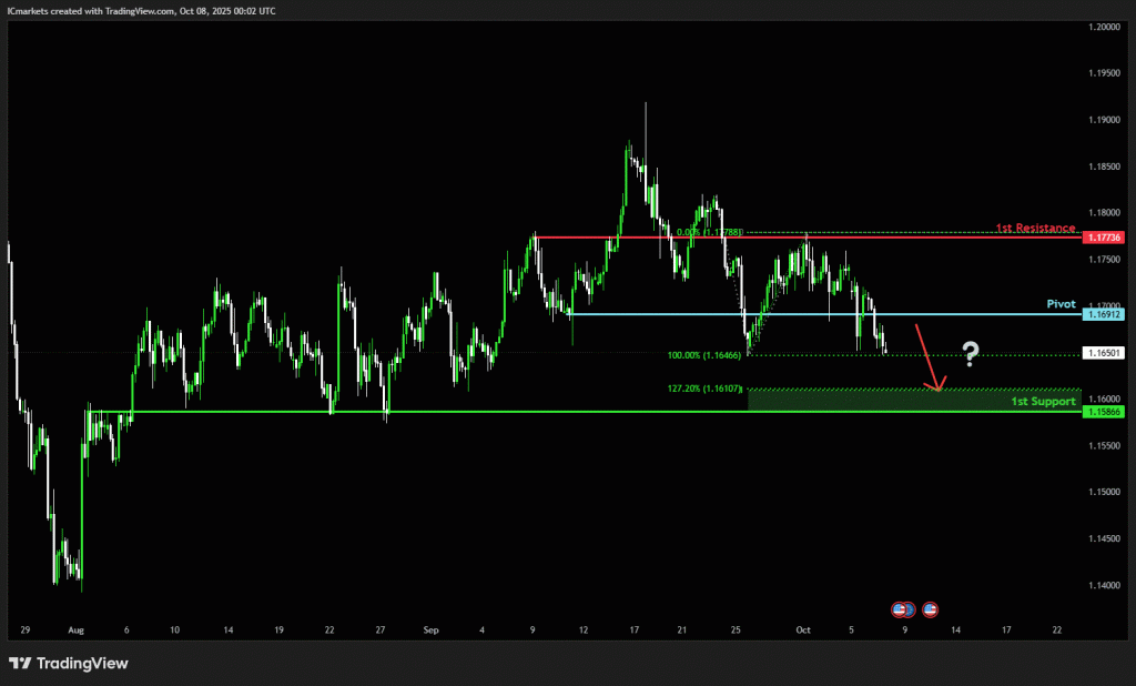 The price could see a short-term pullback toward the pivot before continuing its bearish move down toward the 1st support.