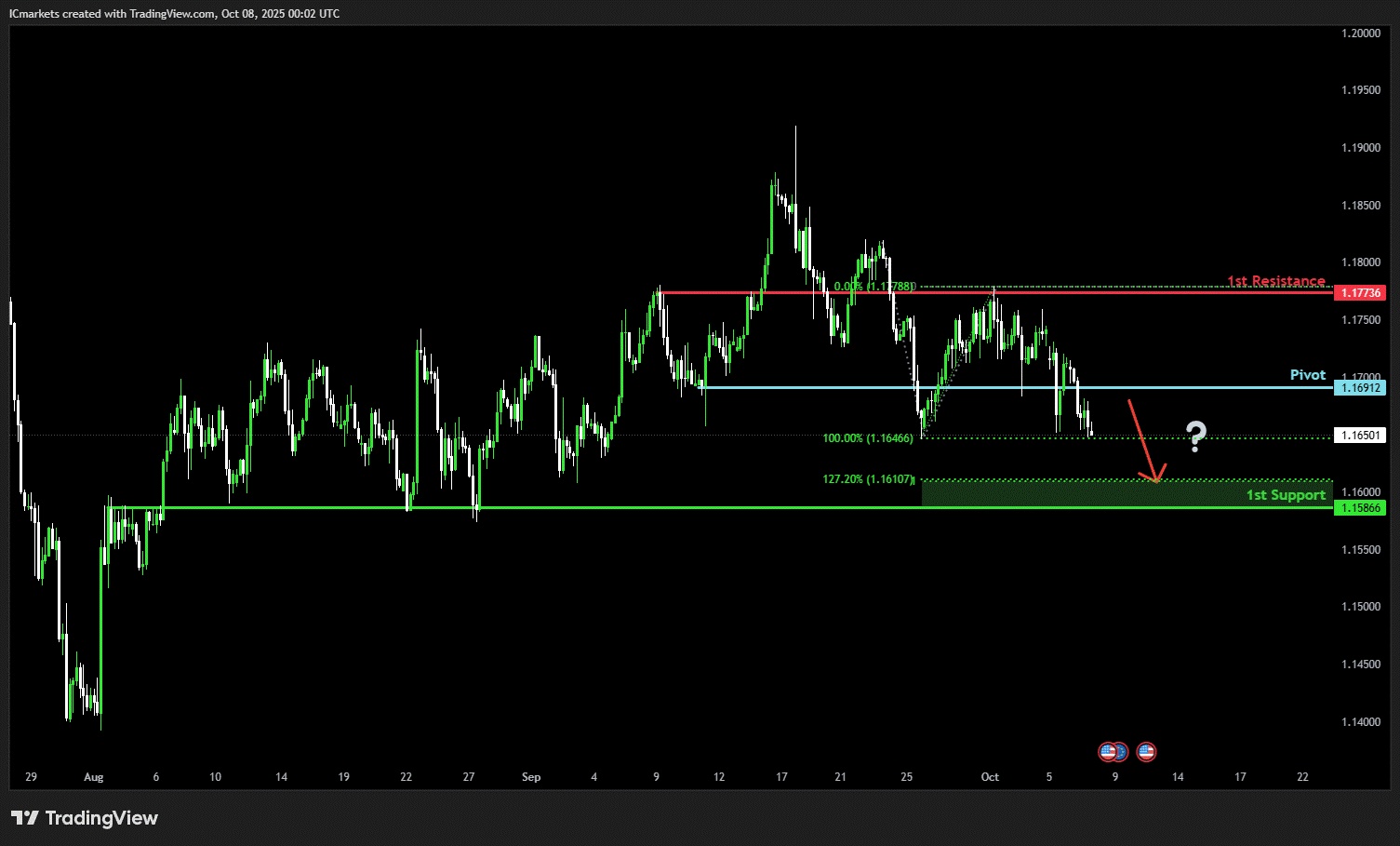 The price could fall toward the pivot and make a bullish bounce off toward the 1st resistance.