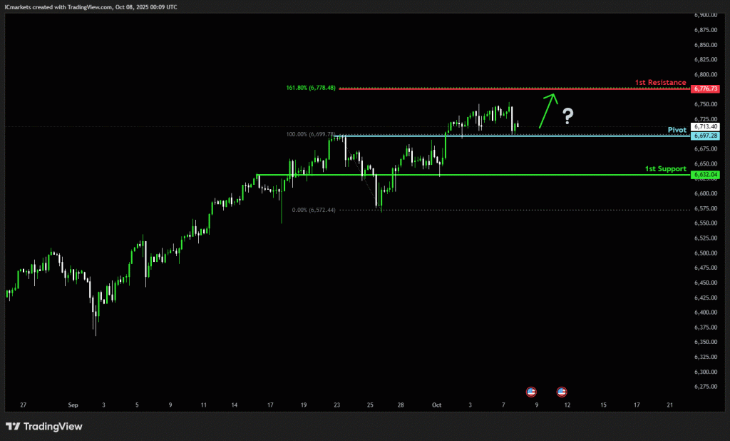 1st resistance: 6,776.73