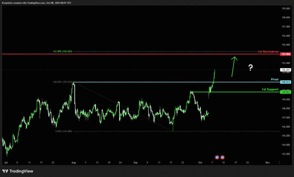The price has already bounced off the pivot and could continue to make a bullish move toward the 1st resistance.